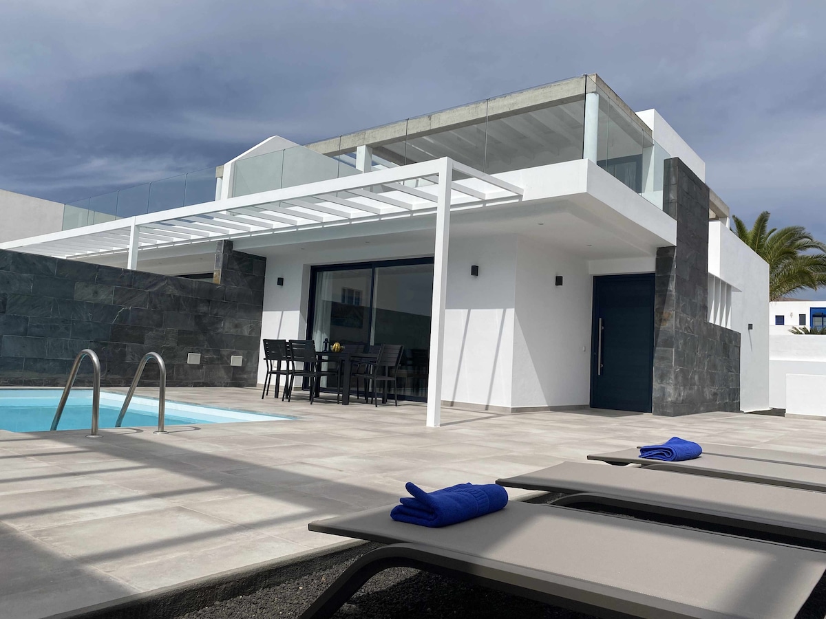 Vila hebat yang dibina pada tahun 2023 ini terletak di selatan pulau Lanzarote, di kawasan istimewa Puerto Calero. Ia mempunyai 3 bilik tidur, 2 bilik mandi dan wifi percuma. Ia mempunyai dua teres yang indah dengan pemandangan laut, serta kolam renang dan barbeku sendiri, sesuai untuk pasangan dan keluarga yang mencari ketenangan dan keselesaan.