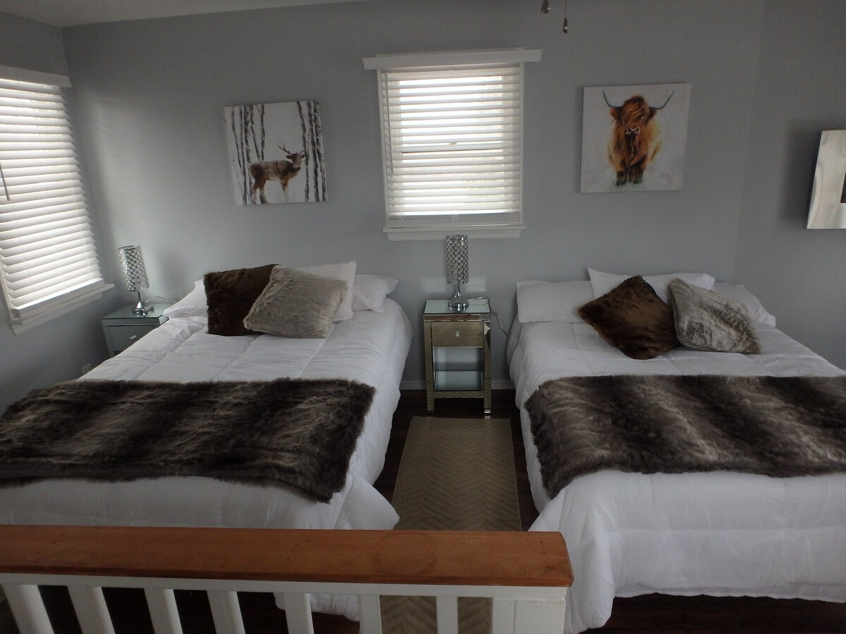 Rumah yang telah diubahsuai sepenuhnya! Tidur 4 orang (boleh disewa dengan B&B bersebelahan untuk parti 12 orang). Semua perabot baru. Hiasan adalah cottagy dengan gaya kontemporari/elegan! Terletak di LaSalle berhampiran Amherstburg di tempat letak kereta desa. 20 minit memandu ke kasino. Berjalan di padang atau nikmati segelas wain di dek yang menghadap padang. Berdekatan dengan Jambatan Duta, Kilang Wain. Tempat letak kereta besar tersedia untuk kenderaan besar/lori/treler. Bilik tidur tingkat atas mempunyai 2 katil double, sofa tingkat utama.