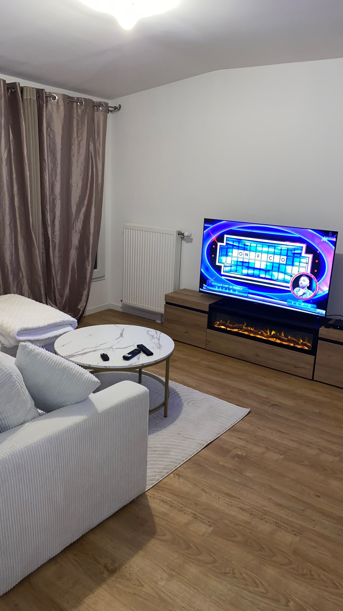 Penginapan yang selesa dan bersih dengan balkoni, gentian dan tempat letak kereta yang selamat, sesuai untuk 4 orang. 2 Bilik Tidur: 1 dengan katil double dan 1 bilik tidur dengan katil single, sofa ruang tamu dengan Netflix, dapur lengkap, bilik mandi dengan tab mandi. Kediaman yang sangat tenang. Dekat dengan kedai, Paris (20 minit) dan Roissy-CDG (15 minit). Cadar, tuala disertakan. Parti atau acara tidak dibenarkan.
