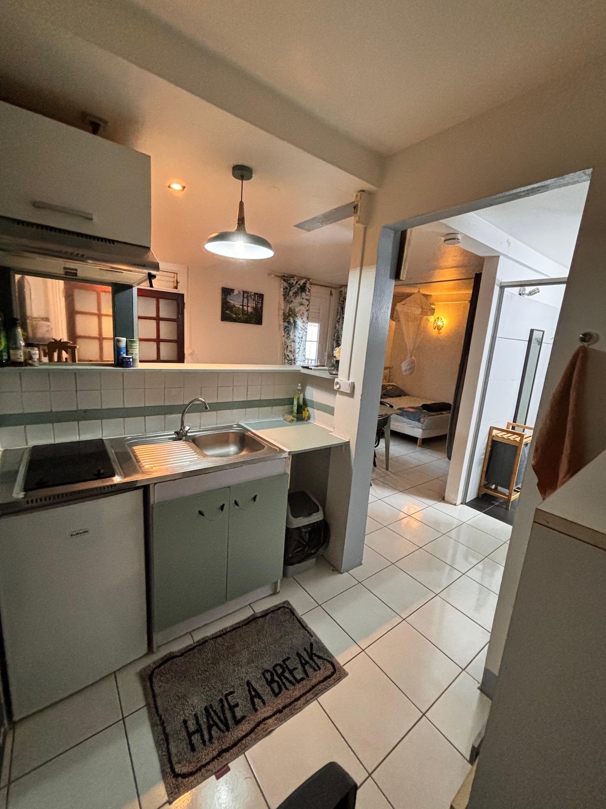 Saya menawarkan "Bas de maison" saya di tengah-tengah kehijauan, tenang dan sejuk, menghadap Laut Caribbean. 5 minit memandu dari pantai dan kampung. Apartmen bebas sepenuhnya seluas 90m2 ini mempunyai teres tertutup yang besar yang menghadap taman hutan kami. Tidak terlepas pandang. Kedua-dua bilik tidur dan dapur mempunyai akses terus ke teres. Pemandangan Laut Caribbean yang sangat cantik, di sebelah matahari terbenam. Akses bebas sepenuhnya (tangga) Tempat parking persendirian Haiwan peliharaan tidak dibenarkan
