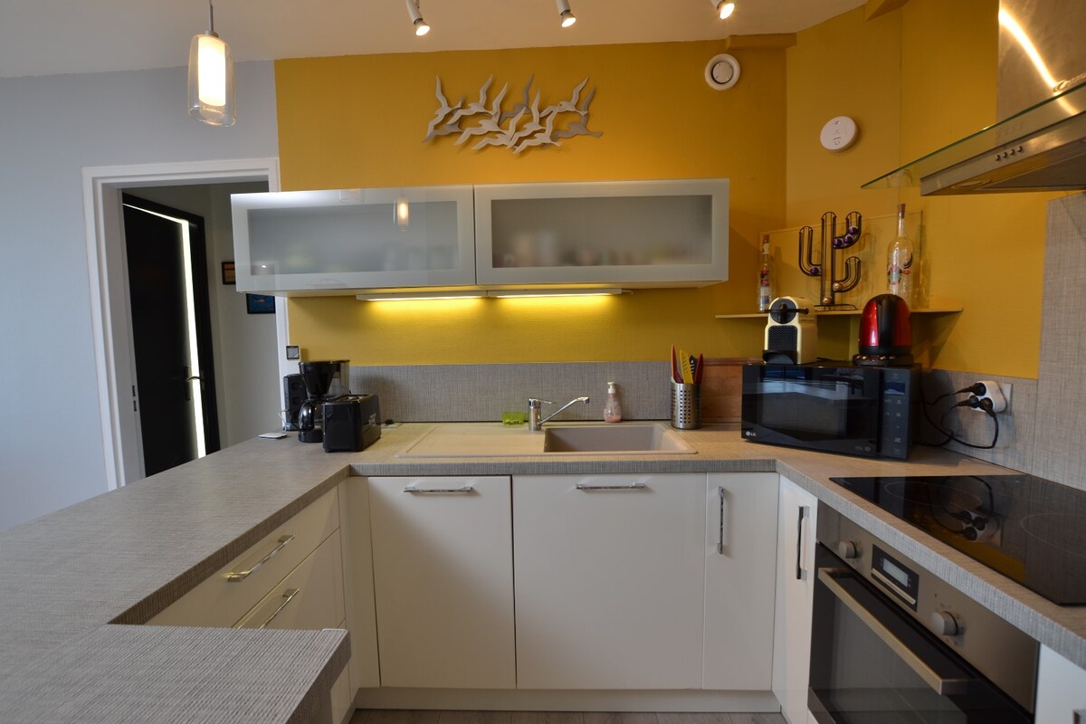 Apartmen berhawa dingin, diperbaharui, wifi. 120m dari pantai, semua kedai dan pusat bandar. Apartmen ini diklasifikasikan sebagai penginapan pelancong berperabot 2*. Kapasiti tidur 2 orang. DAPUR: peti sejuk, ketuhar gelombang mikro,ketuhar, pembuat kopi, cerek,dapur memasak LOUNGE: sofa bed, TV. 1 BILIK TIDUR: 140 katil, tepi katil, almari pakaian, kawasan meja Teres besar
