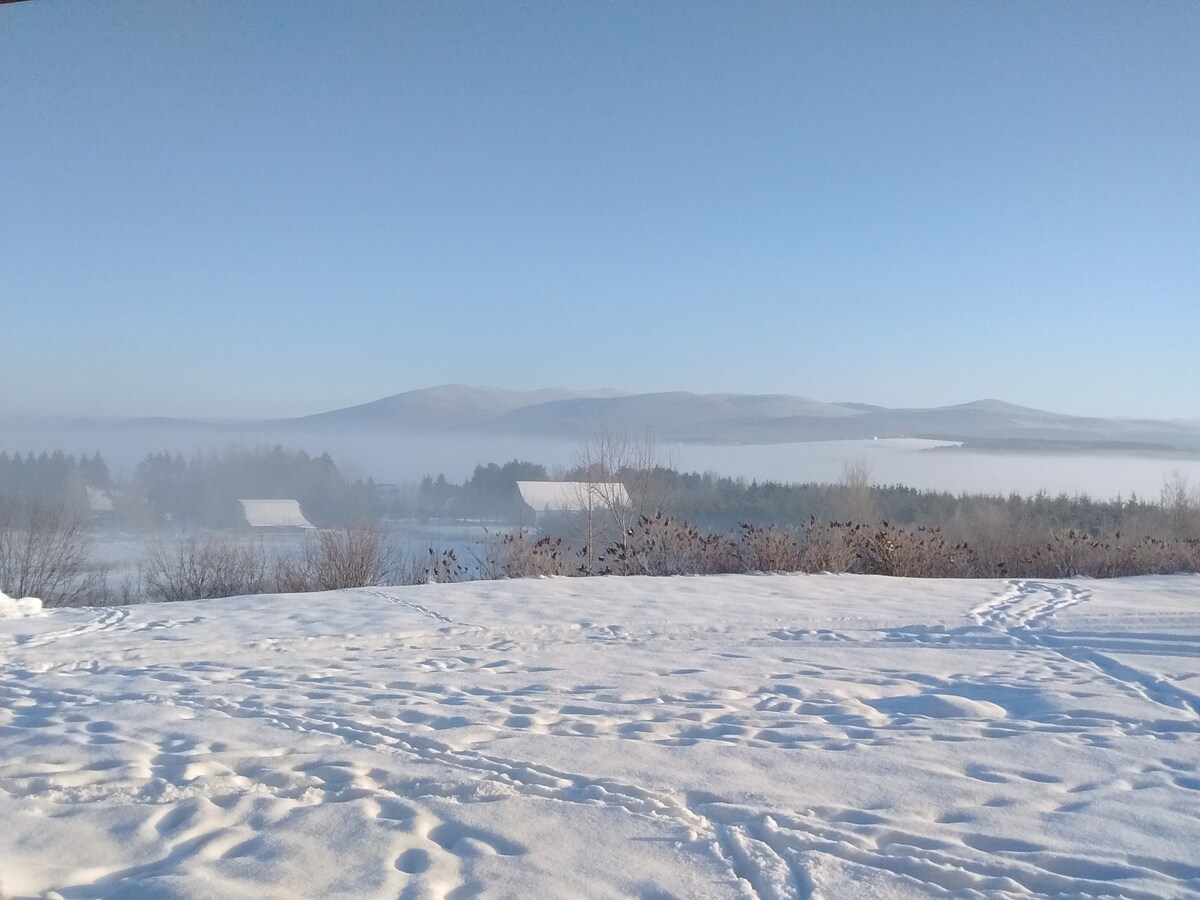 Endroit paisible avec jolie vue sur les montagnes, les prairies et le ciel étoilé (Réserve internationale ciel étoilé). Lieu parfait pour décrocher (SEPAQ + sentiers frontaliers). Tout près des commodités. À ~20 min du Parc du Mont-Mégantic (entrée Franceville ou de l'Observatoire). À mi-chemin entre Sherbrooke et Lac Mégantic (~45 min) À 2 min en auto: borne de recharge, épicerie de village, essence, resto, Interac. Attraits locaux (voir photo)