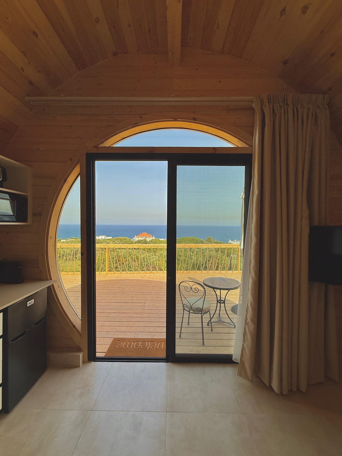Bercuti ke rumah unik kami yang berbentuk tong yang menghadap pantai Thoum-Batroun yang indah. Terletak di alam semula jadi dan hanya berjalan kaki singkat dari pantai, ia menawarkan percutian yang tenang dengan pemandangan laut yang menakjubkan dan bunyi alam semula jadi yang menenangkan—sesuai untuk percutian yang santai.