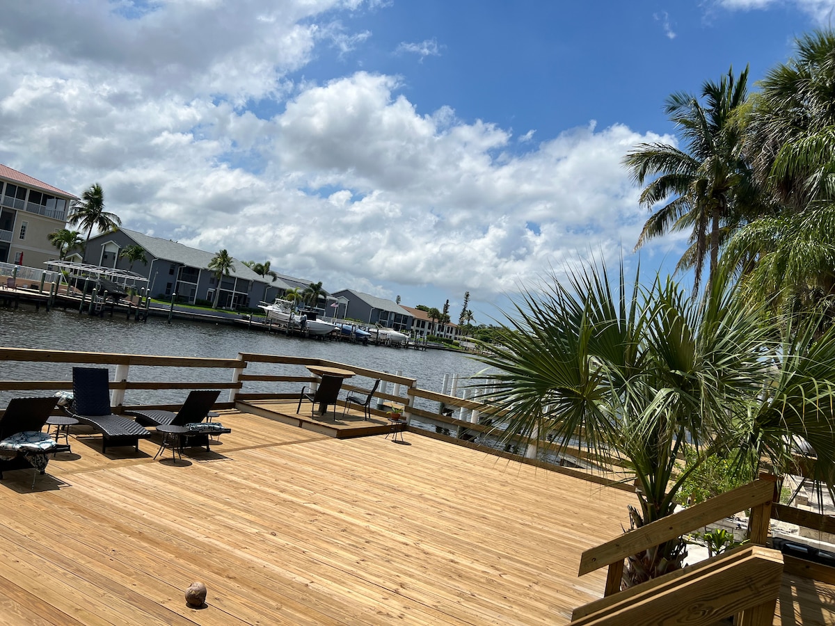 Latitude 26 Waterfront Boutique Resort - Resort tepi air yang luar biasa tanpa yuran resort....kayak, papan kayuh, basikal! Sarapan kontinental percuma. Kolam air panas dalam suasana tropika, nikmati malam di laluan pejalan kaki kami di meja bomba. Studio hiasan pantai yang besar dan bersih dengan Katil King, pendiangan elektrik biru, TV striming. Bilik mandi yang boleh diakses oleh orang kurang upaya. Naik troli pantai ke Lover's Key Beach Park, berjalan-jalan ke Pinchers untuk menikmati makanan laut, belayar semasa matahari terbenam terus dari marina kami? Tenang...berehat
