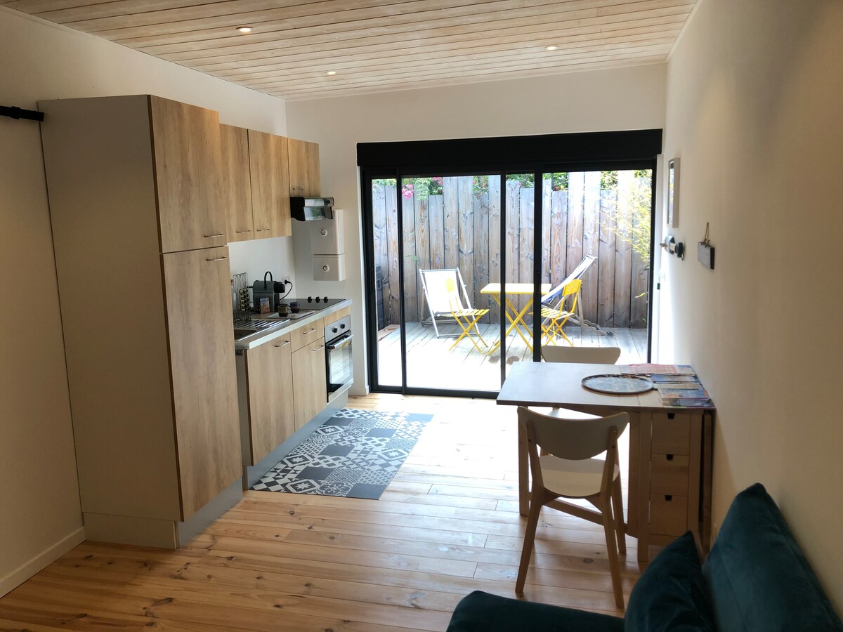 Maisonnette située au coeur d'un grand jardin arboré calme, à quelques mètres de la piste cyclable, des forêts, de l'eau : baignades plages océanes et plages du Bassin, activités nautiques, ports ostréicoles. Proximité tous commerces (3min.). Marchés ma./vend./dim. Terrasse ombragée. Linge de maison à disposition. Vélos sur place. Accueil 3 pers. Bb/enf. bienvenu ! Télétravail : réseau wifi faible. Accès facile villages du Cap ferret. Petit déj' bio/maison à la carte en supp. sur demande.