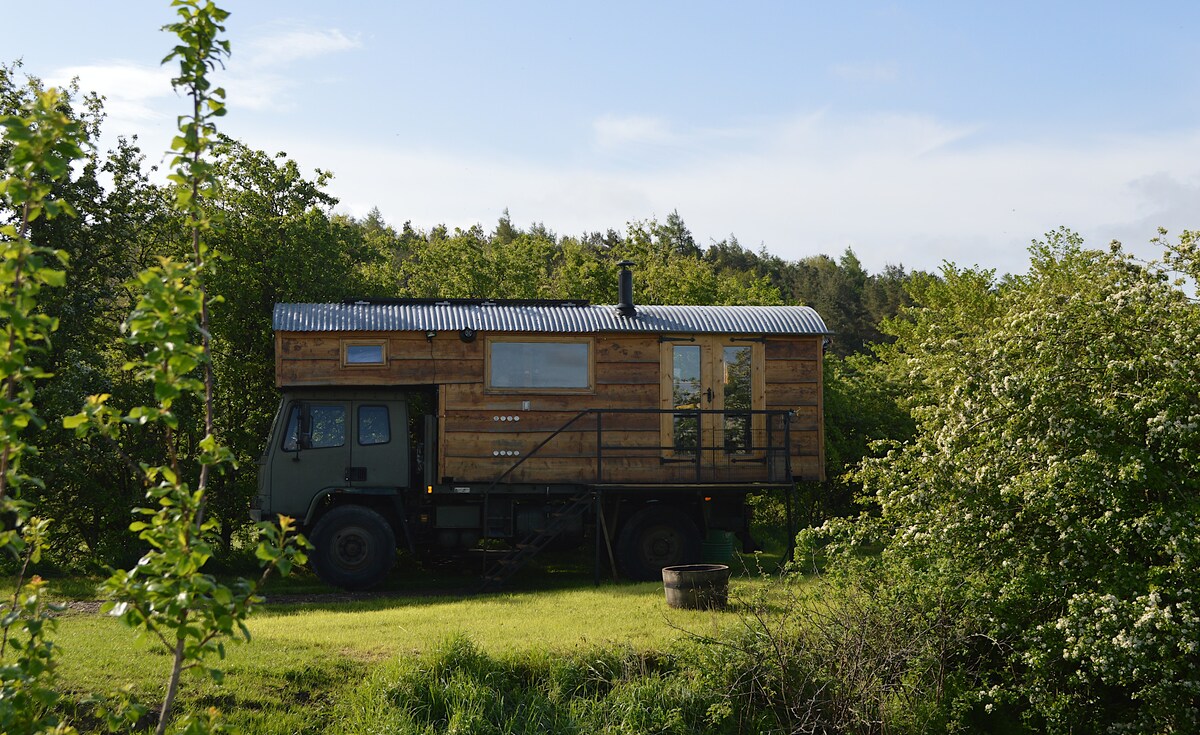 Selamat datang ke SHEP – pondok gembala anda yang selesa di atas lori tentera vintaj, terletak di sepanjang landasan kereta api lama di ladang keluarga kami di Scottish Borders. Duduk mengerekot di tepi dapur kayu pada musim sejuk atau buka pintu Perancis untuk barbeku musim panas. Sesuai untuk pasangan, keluarga atau penginapan solo. Tab mandi air panas kayu pilihan – £70 setiap penginapan (sila tempah lebih awal). Perkhidmatan pra-lampu boleh diminta tetapi tidak sentiasa tersedia. Kayu api tambahan boleh dibeli pada harga £15 sebeg.