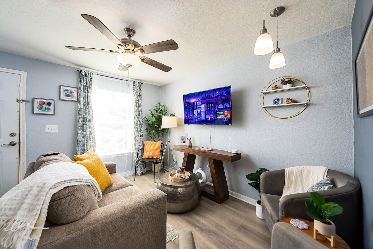 Tempat Letak Kereta🚨 Percuma! Anda Sahaja: ⭐️ 0.6 Mi ke Pusat Konvensyen Henry B - 14 minit berjalan kaki ⭐️ 0.4 Mi ke Menara Amerika - 9 minit berjalan kaki ⭐️ 0.5 Mi ke Alamodome - 11 minit berjalan kaki ⭐️ 0.9 Mi ke Alamo - 20 minit berjalan kaki ⭐️ 0.6 Mi ke The Riverwalk - 14 minit berjalan kaki Selamat datang ke rumah anda yang jauh dari rumah! Apartmen 2 katil 2 bilik mandi kami yang bergaya dan luas terletak di pusat bandar SA. Alami pemandangan menakjubkan dari keselesaan ruang tamu, dapur dan bilik tidur anda. Tempah sekarang dan buat kenangan abadi!