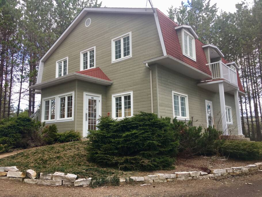 Venez décrocher de la ville dans ce magnifique chalet perché sur un lac sans bateau à moteur dans un espace très boisé et privé. Une vue incroyable et de majestueux balcons. Le chalet comporte trois chambres fermées. Pour baignade, spa , paddle board, canot, kayak, randonnée, ski de fond, ski alpin, raquettes, VTT, motoneiges, ou y travailler à distance!