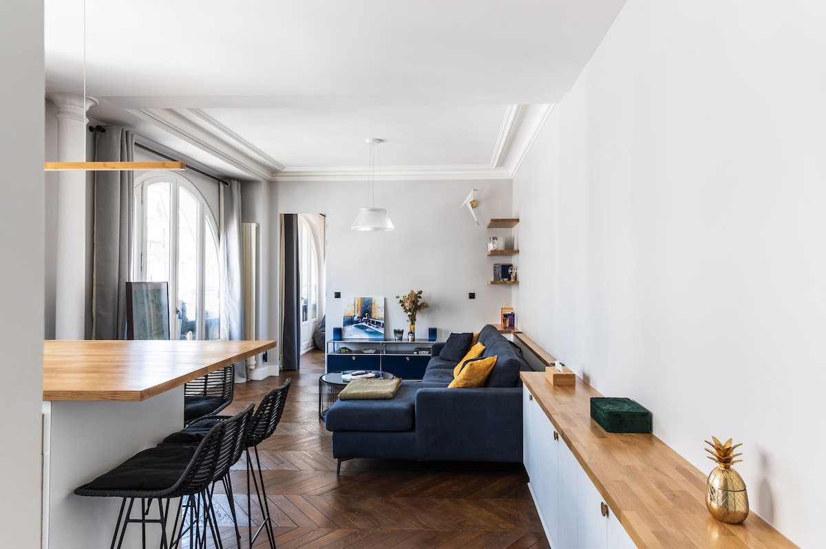 Apartmen berhawa dingin seluas 60 m2 dengan susun atur mewah di tengah-tengah daerah bersejarah Paris di Montorgueil, terkenal dengan kedai makanan, bistro kecil dan restoran. Apartmen ini terletak di tingkat 1 bangunan di jalan yang sangat tenang. Ia telah diubah suai pada tahun 2023 oleh seorang arkitek terkenal dan oleh itu sangat teratur dengan kemudahan standard yang sangat tinggi. Anda akan berada di sana seperti di suite hotel dengan pesona selain itu, penginapan Paris yang sebenar.
