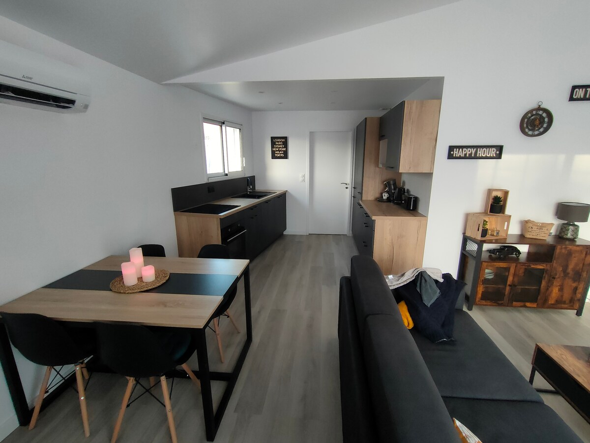 Pondok baharu yang selesa dan cerah seluas 47 m² (506 kaki persegi) dengan bilik tidur berasingan, terletak di Sud-Loire-les-Sorinières. Anda akan menemui semua yang anda perlukan untuk penginapan yang menyeronokkan. Anda akan menikmati teres besar yang tenang dengan pemandangan tanpa halangan serta ruang parkir peribadi percuma. Apartmen ini moden dan sangat lengkap, sesuai untuk penginapan percutian atau perniagaan. Cadar dan pembersihan disertakan. 15 minit berjalan kaki dari kampung, 5 minit berjalan kaki dari bas C4 yang membawa anda ke pusat bandar Nantes, 10 minit dari lapangan terbang.