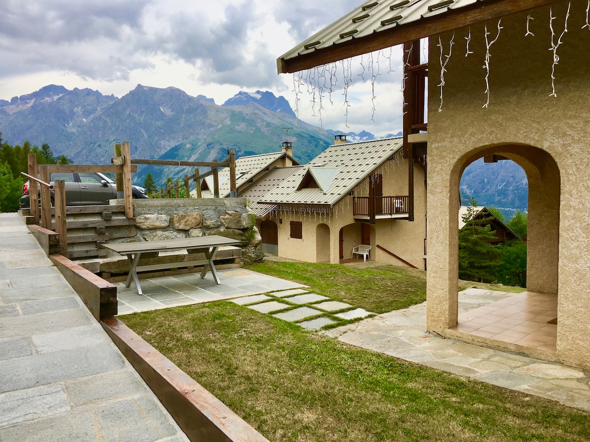 Chalet kami terletak secara senyap di taman persendirian. Teres seluas 30m2 akan membolehkan anda menikmati pemandangan panorama. Tempat letak kereta percuma. Kami telah menjaga peralatan dan hiasan khas untuk suasana kepompong. 5 minit berjalan kaki dari pusat Guillestre: semua kedai , pawagam, restoran, pasar raya. Di pagar Queyras, Vars, Risoul, dan Frisian lokasi geografinya akan memberi anda akses kepada taman permainan tanpa had pada musim panas dan musim sejuk.