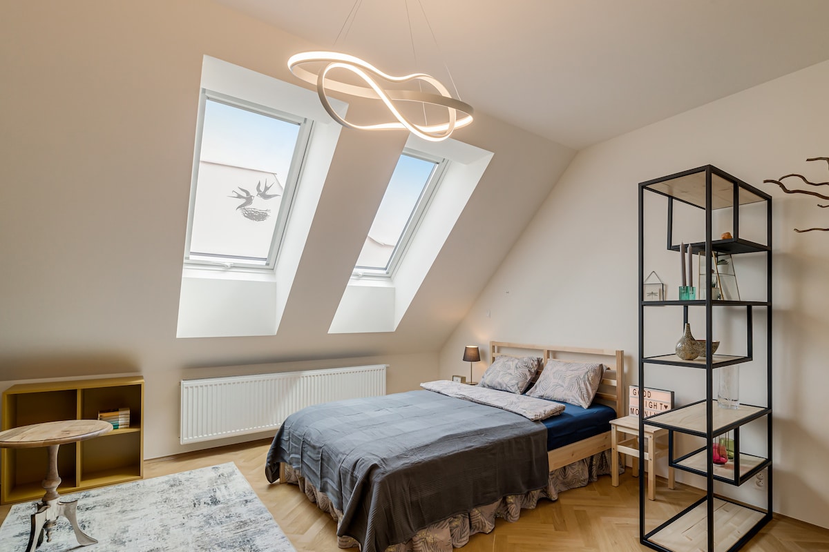 * LOKASI TERATAS di pusat Prague * TERES PERSENDIRIAN dengan pemandangan menakjubkan * apartmen loteng DUA TINGKAT YANG CERAH dengan tingkap besar * BARU DIBINA dan berperabot pada tahun 2022 * TEMPAT LETAK KERETA disediakan di tepi rumah * PERHENTIAN TREM betul-betul di rumah * A/C * LIF Alami detik-detik yang tidak dapat dilupakan dengan rakan-rakan atau berehat di teres persendirian dengan pemandangan panorama Prague yang bersejarah dan pemandangan paling ikonik di Bandar Diraja Prague.. Apartmen ini dikelilingi oleh bar, kafe, restoran dan kedai runcit.