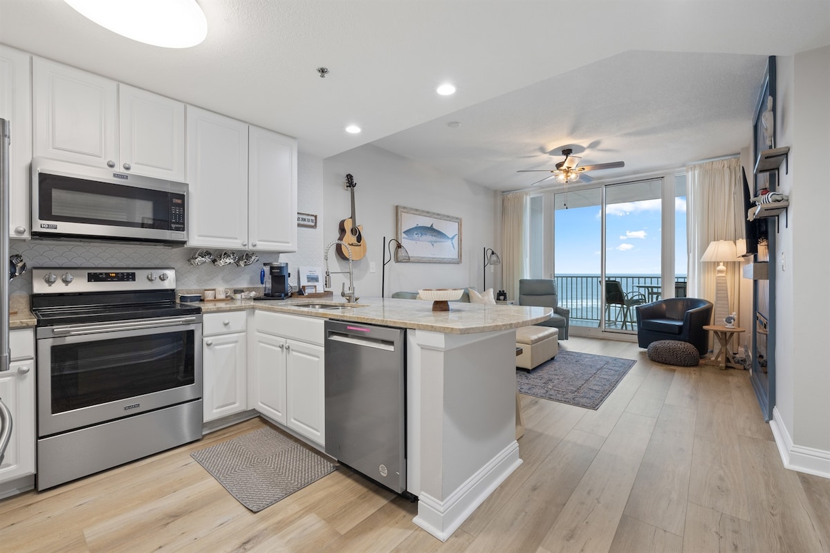 Di Lighthouse 913, pantai adalah halaman belakang anda dan suasananya tiada tandingan! Penginapan menghadap Teluk di tingkat 9 ini adalah tiket anda untuk berjemur, meluncur dan udara laut. Bersantai di balkoni dengan pemandangan yang menakjubkan, sediakan hidangan tropika di dapur yang bergaya, atau bersantai di ruang tamu yang berangin. Suite utama yang menakjubkan, bilik tetamu yang selesa, dan sudut katil dua tingkat yang menyeronokkan memastikan seluruh kru selesa. Dengan kolam renang, tab mandi air panas dan laluan papan ke pasir, sudah tiba masanya untuk menikmati gelombang santai!