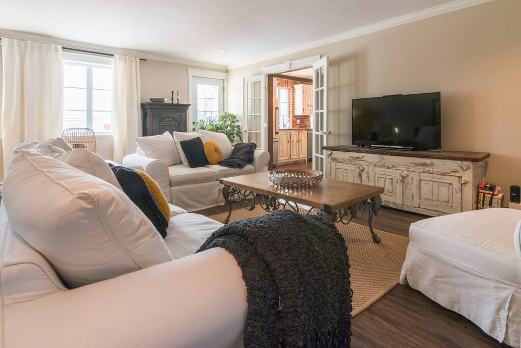 Kami membuka pintu ke rumah cantik kami di Île d 'Orléans. Terletak di penginapan 1 ekar dengan pokok-pokok matang dan pemandangan Sungai St. Lawrence yang menakjubkan, datang dan berehat di kawasan desa, hanya 20 minit dari Old Quebec. Kemudahan di tapak termasuk spa, pendiangan pembakaran kayu dalaman dan luaran, BBQ, penginapan untuk 10 orang, dan 3 bilik mandi. Ladang anggur, produk tempatan, dan pesona dunia lama hanya beberapa minit memandu dari rumah. CITQ: 311604