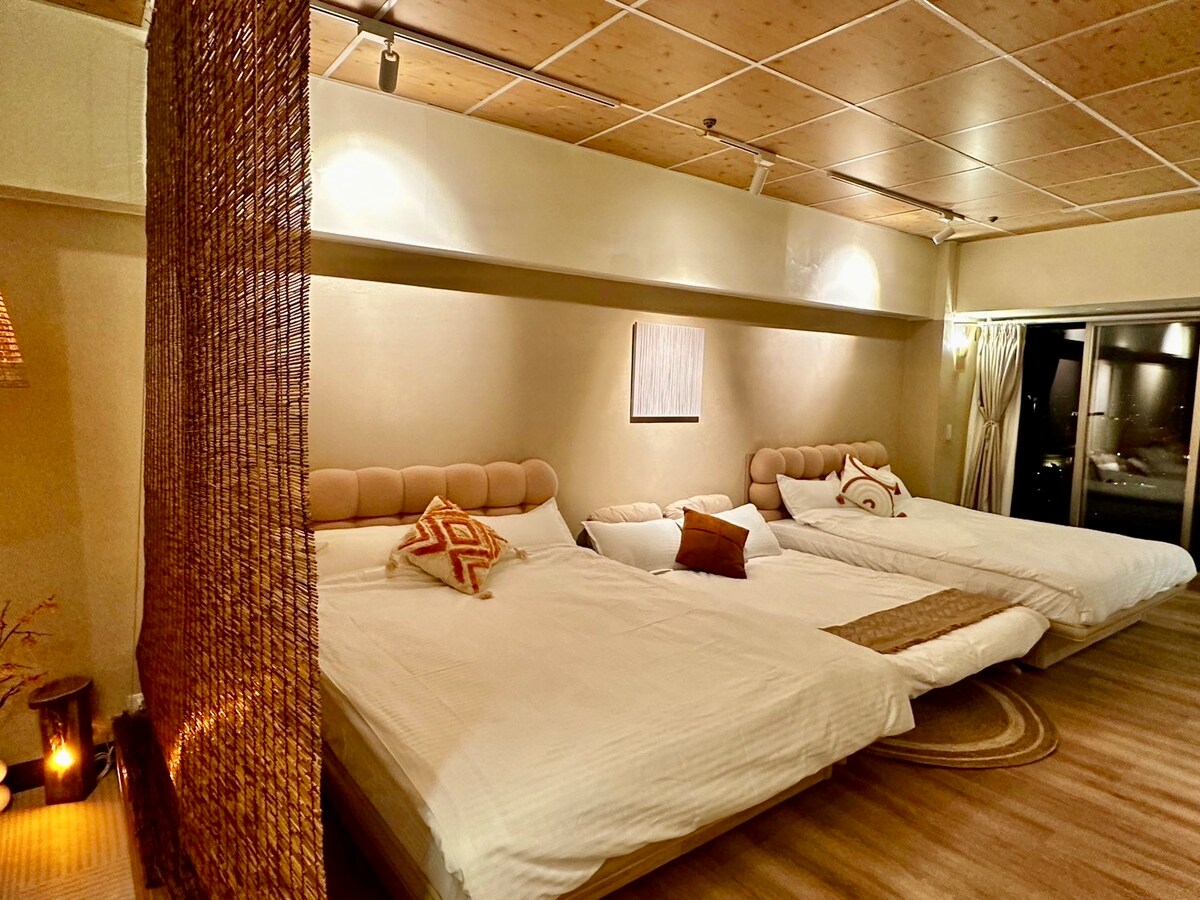 室內的灰白主色,配搭北美木紋銅色傢俱及家飾, 用心為您的居住空間提供沈靜優雅的感覺。日韓系電器的選用,不論是無線充電藍牙喇叭 ,大螢幕伸縮高清電視 ,都能滿足您對影音效果的要求。房源位於高樓內縮樓層,阻絕不必要的噪音並滿足您對景觀 ,安靜及隱私的要求。大樓並配有全天候警衛,住戶專屬電梯 ,公用大露台 ,以及地下收費停車場, 位處西門町核心路段,無論搭乘捷運或自駕都非常方便。Reka bentuk dalaman berasaskan nada bumi menawarkan suasana pemanasan, ketenangan, penyembuhan dan keseronokan. Kemudahan bilik, termasuk katil double, bilik mandi en suite dengan pancuran mandi, penyaman udara, TV 4K pintar dengan filem/Netflix, internet WIFI, pencahayaan teluk dan pemain muzik dengan sambungan wayarles & port pengecas USB.