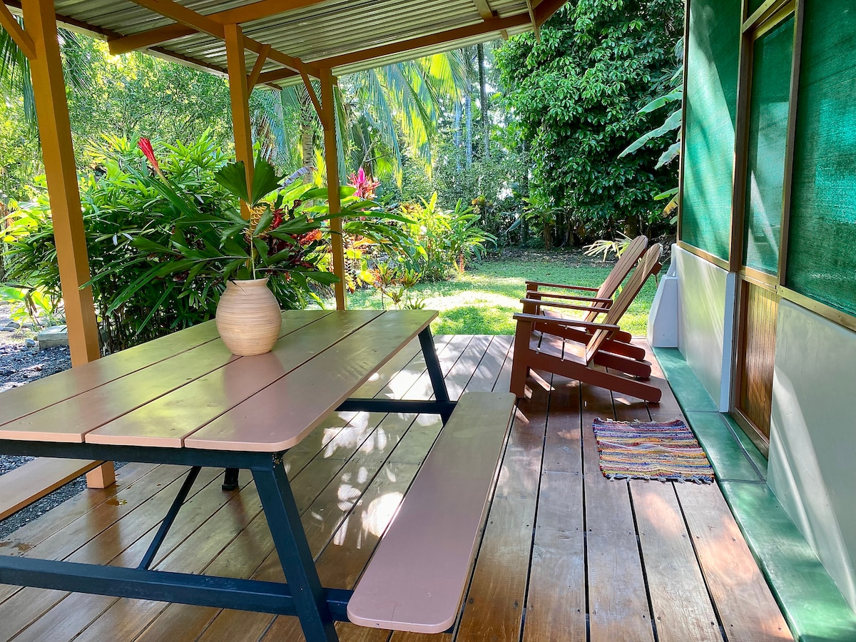 -TWO minute walk to the beach - Four charming bungalows centered around an inviting pool - Quiet location near all amenities - 200m from the top of the world class point break - Refreshing waters of the Rio Claro is only 150m away - 5-10 minute walk to center of town with restaurants and grocery stores - Pool and outdoor shower - Covered outdoor kitchen and BBQ area - Fully equipped modern kitchen - Ice cold A/C and wifi with UPS backup -Toucans and other wildlife abound