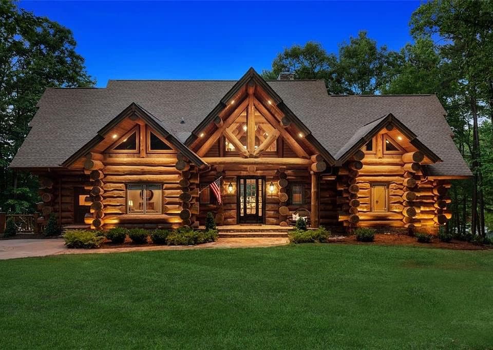 Rumah Log Menakjubkan dengan Dok, Lubang Api