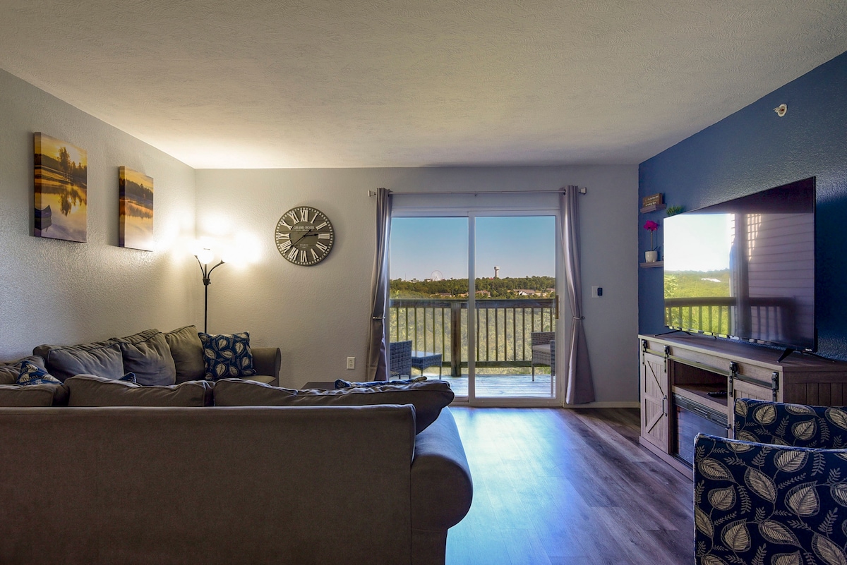 SDC Open 1/4 to 9PM. Welcome to Branson's newest gem! Our 3BR city view condo is perfect for groups of 4-10. Modern and stylish, it features a patio and community pool, and is located just a short drive from Silver Dollar City, Table Rock Lake, and other nearby attractions. The condo offers stunning views of the Branson Strip and features stainless steel appliances and granite countertops. With a 4.9 out of 5.0 rating for cleanliness, your stay is sure to be comfortable and enjoyable. Book now!