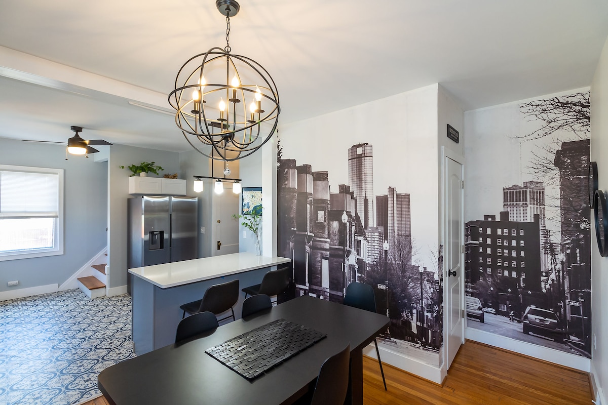 Rumah bandar yang diubahsuai dengan indah ini menggabungkan kemewahan dan keselesaan. Masak di dapur yang luas dengan peralatan keluli tahan karat baharu dan permukaan kaunter granit, makan di meja kayu tepi langsung tersuai, dan nikmati rancangan kegemaran anda di TV Roku 65"dengan bar bunyi Sonos. Bersantai di tab mandi dalam atau berundur ke oasis halaman belakang yang menampilkan dek besar, tab mandi panas, barbeku gas asli, perabot patio, dan pencahayaan yang indah. Berehat dengan tenang di atas dua katil queen mewah di tempat percutian yang menakjubkan ini.
