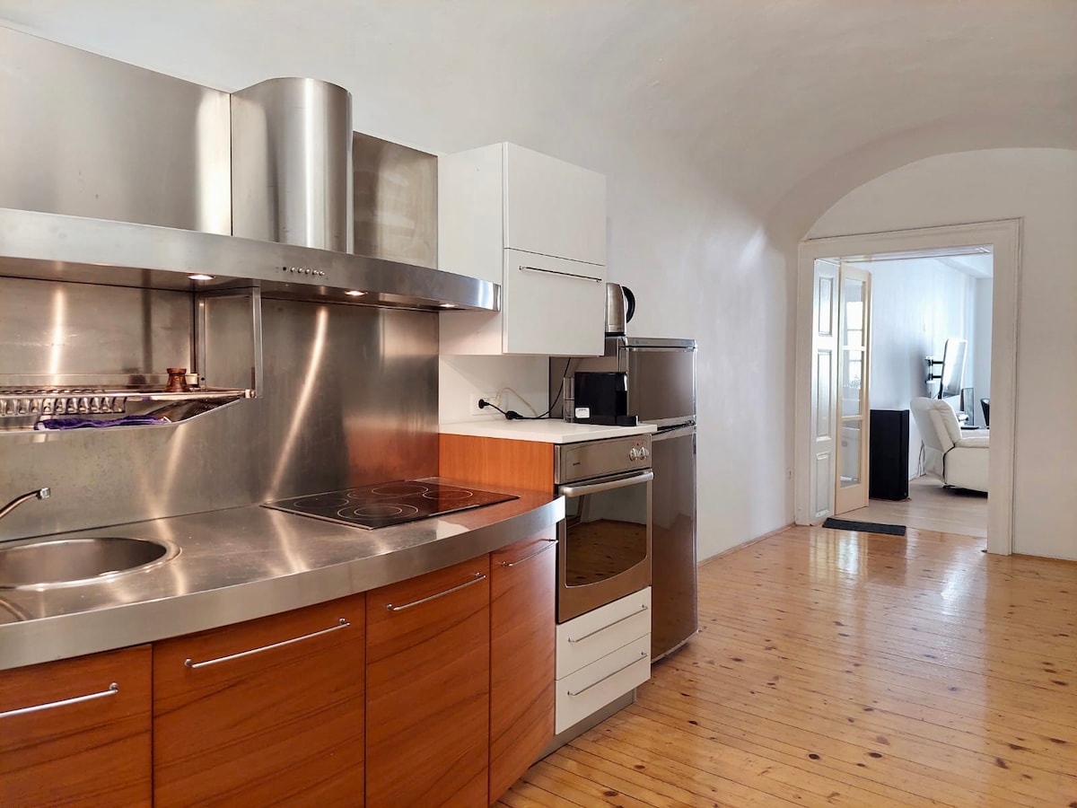 Selamat datang ke apartmen kami yang menawan dan baru diubahsuai, dengan pemandangan istana yang menakjubkan. Ruang kami direka dengan warna semula jadi dan sentuhan minimalis untuk menyediakan pengalaman hidup yang selesa dan indah. Lokasi ini sesuai untuk pengembara, kerana ia terletak di tengah-tengah bandar dan dalam jarak berjalan kaki ke semua tarikan utama. Sama ada anda ingin meneroka bandar atau hanya berehat dalam persekitaran yang aman, apartmen kami menawarkan keseimbangan yang sempurna.