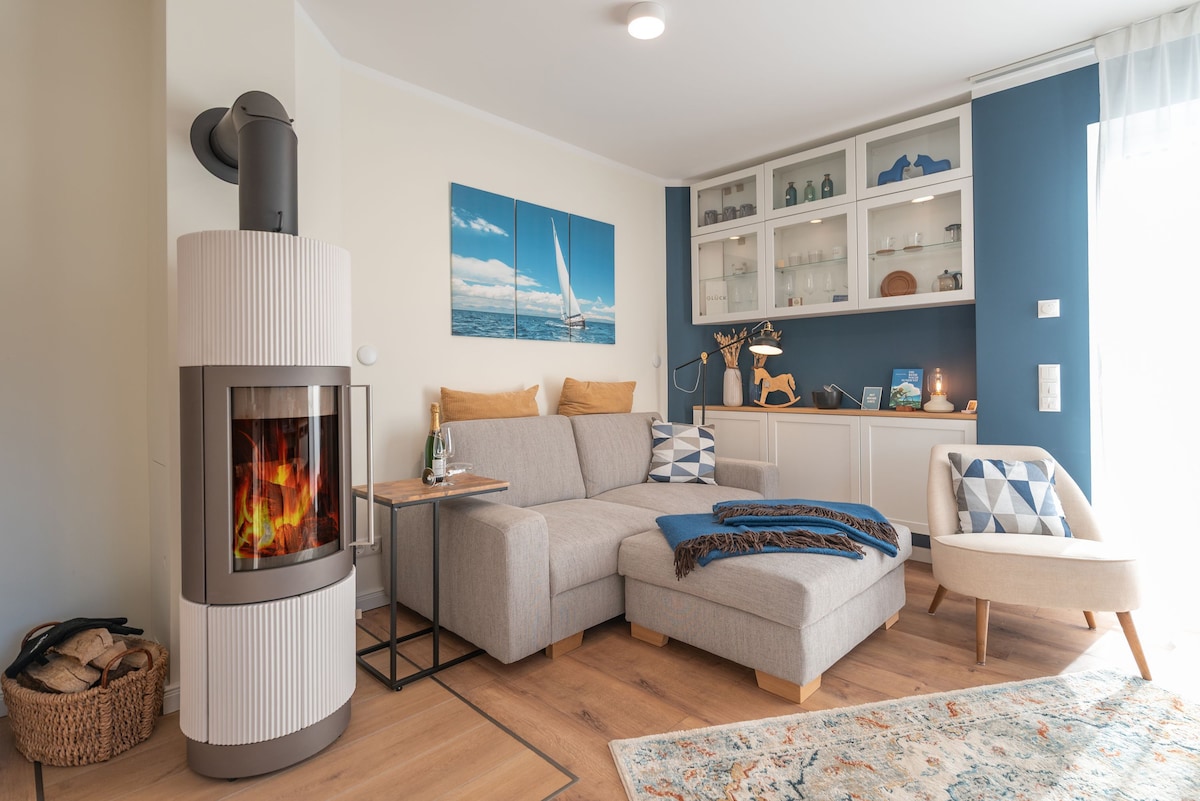 Chalet Möwenblick Rügen dengan pemandangan laut, sauna, pendiangan