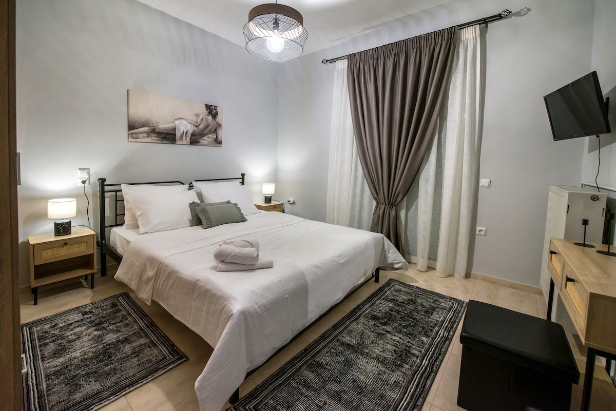 Accommodation in down town, in one of the city's most aesthetic neighborhoods. A welcoming and cozy apartment with a modern decoration and latex and cocopalm mattresses for a more pleasant sleep. Located in a tranquil angle of the historical trade center (Trikala's Open Mall), it is ideal to enjoy the city on foot since all the major landmarks are within a walking distance (Manavika Area 2 min, Central Square 3 min, Central Bridge 5 min, Asclepiou Street 4 min, Varoussi Old Town 7 min.