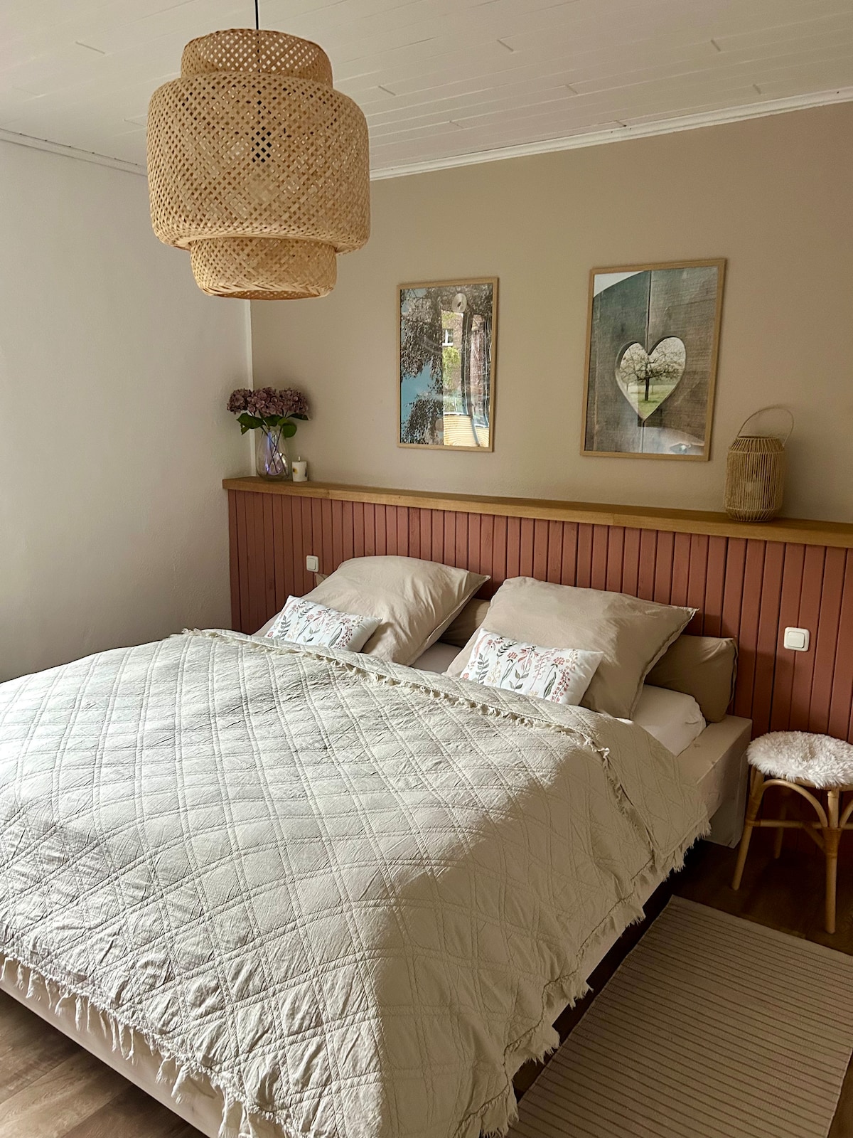 Apartmen loteng banglo yang cerah, moden dan luas dengan penyaman udara yang kuat, 80 meter persegi, untuk 1–5 pers., di lokasi kampung dan pinggir hutan yang tenang! Ruang tamu dan ruang makan yang besar (termasuk Katil futon double) , bilik tidur dengan katil double, katil tetamu, dapur (dengan mesin basuh pinggan mangkuk), tab mandi. Terletak di tengah-tengah semua taman hiburan. Wifi, teres hutan dengan bakul api dan barbeku, tempat letak kereta yang mencukupi di hadapan rumah, apartmen bebas rokok (merokok tersedia), berbahasa Inggeris.