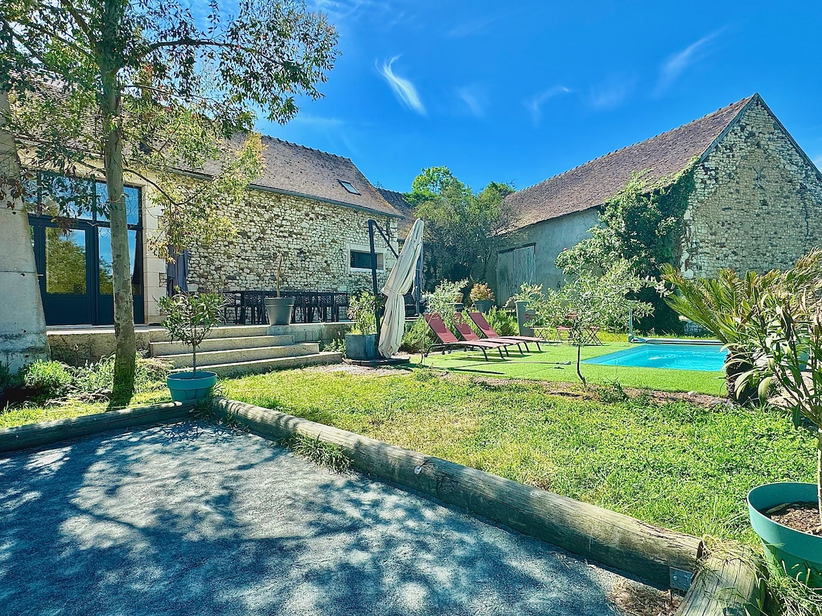 Di tengah-tengah Istana Loire, bekas bengkel yang diubah suai dan sangat cerah di taman seluas 5,000 m2. Kolam renang ini telah dibuka sejak 6 April (untuk tahun 2026)! Tab mandi air panas juga tersedia untuk saat santai yang dikelilingi oleh alam semula jadi (sepanjang tahun, pilihan). Di taman, terdapat kotej “permainan” dengan banyak mainan yang tersedia, trampolin, meja ping pong dan banyak lagi. sewaan basikal, pembersihan pilihan.