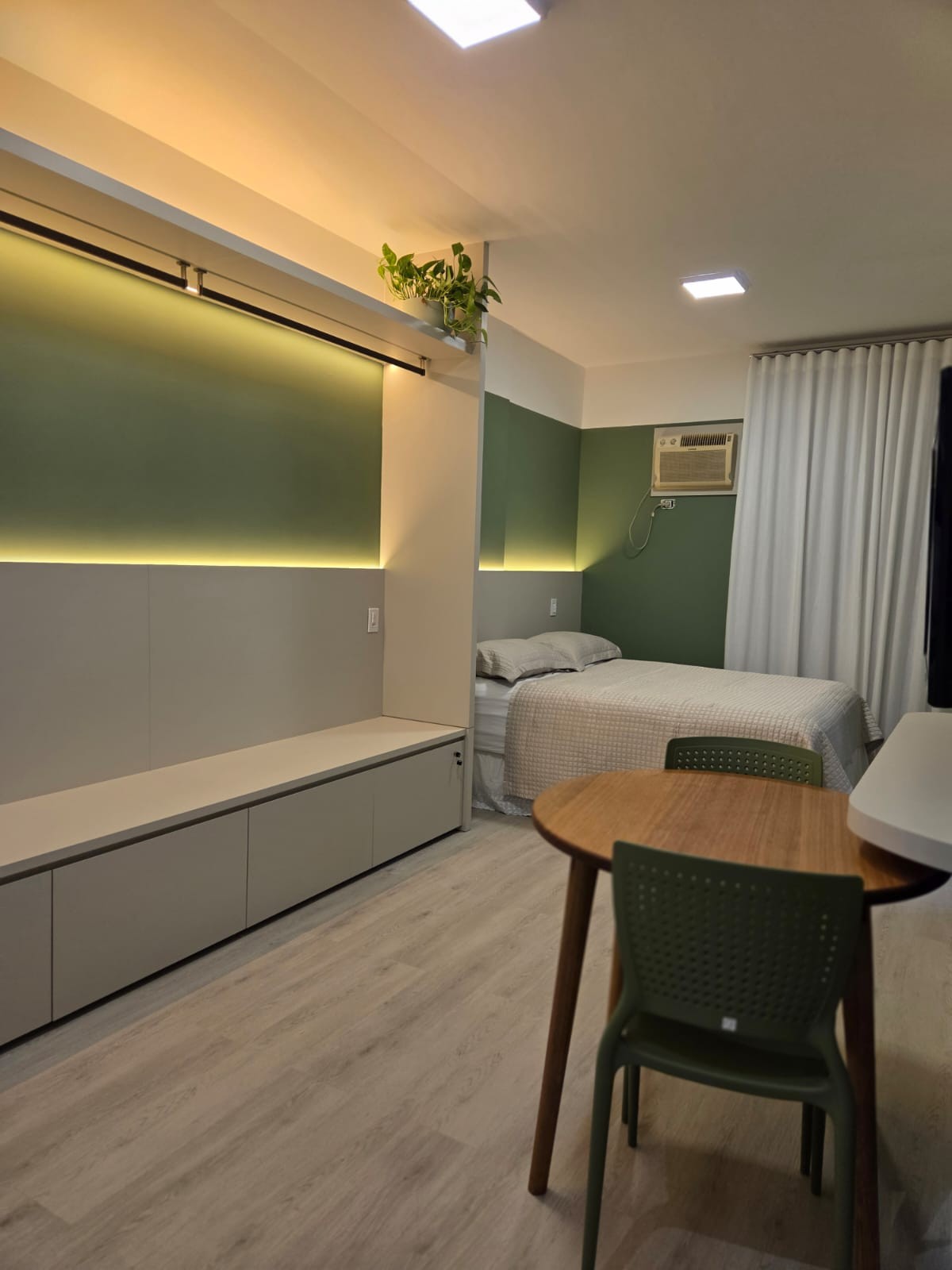 - Studio ini mempunyai 1 katil kelamin tilam spring Queen c, TV pintar 32'', penyaman udara, cadar katil dan mandi, bilik mandi dan dapur penuh. - Boleh memuatkan hingga 2 orang. - Garaj tertutup. - Haiwan tidak dibenarkan. - Penggunaan gimnasium, sauna, kolam renang, rumah lan, bilik mesyuarat dan bilik dobi (7kg seminggu, hari pemeriksaan dalam seminggu yang sepadan dengan apartmen). - Terletak di rantau Higienópolis Avenue, pusat bandar Londrina.