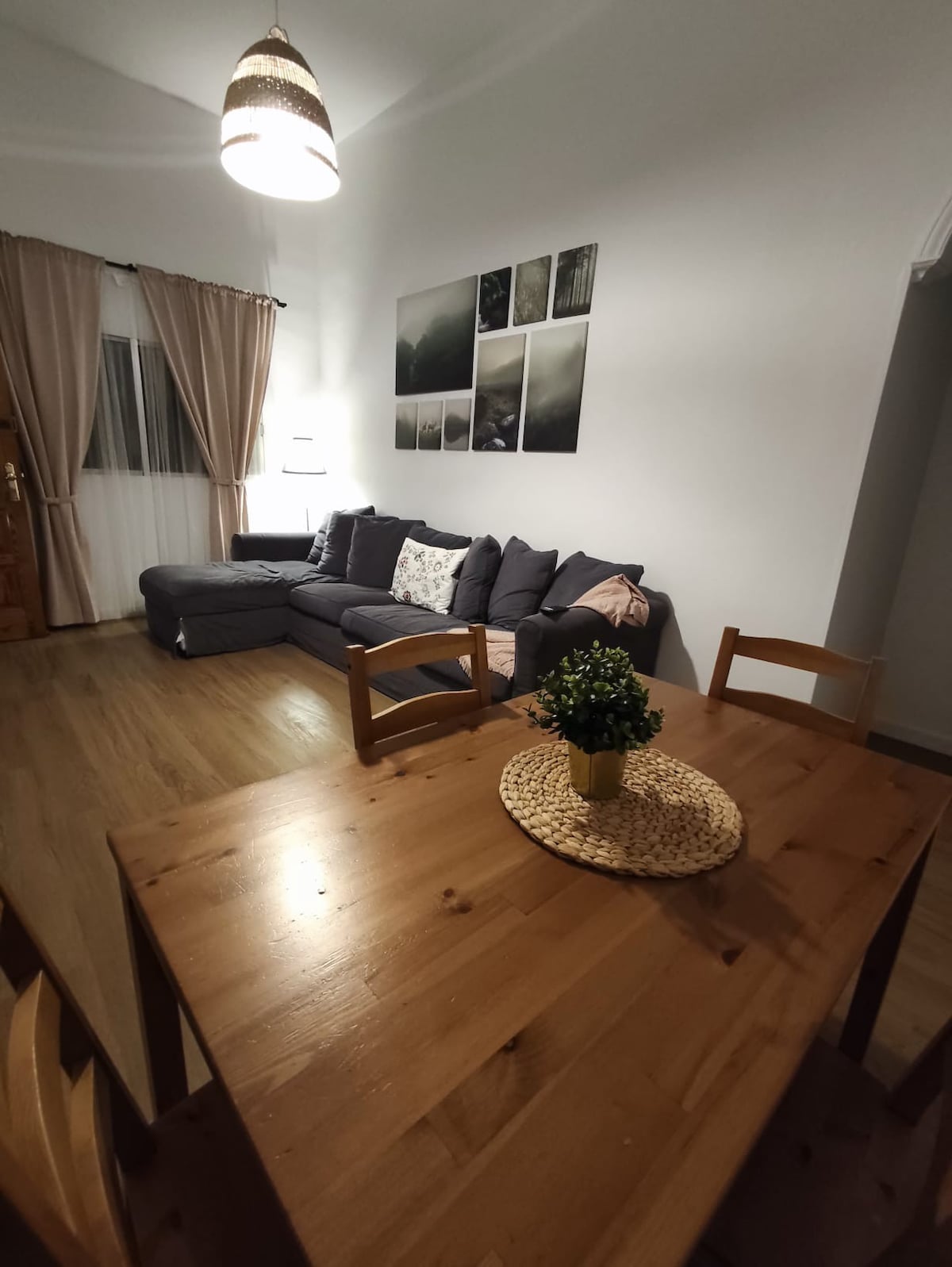 Estudio a 2 minutos caminando a una pequeña playa, con restaurantes y cafeterías muy cerca, también pequeños supermercados y farmacia. Estudio con una pequeña cocina equipada y baño aparte. Tiene un pequeño balcón que se ve la playa y la carretera general del pueblo