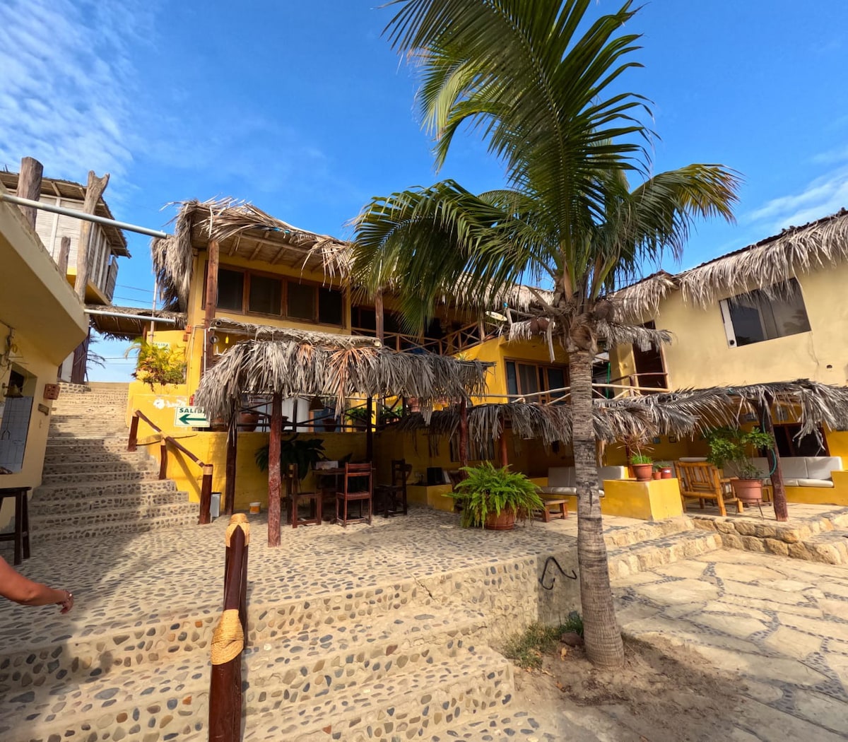 • Penginapan ini terletak enam minit dari jalan utama Máncora di puncak bukit dan sepuluh minit dari pantai bandar. • Di jalan utama terdapat restoran, kilang wain, kedai kraf, agensi pelancongan... • Akses penginapan adalah melalui tangga.