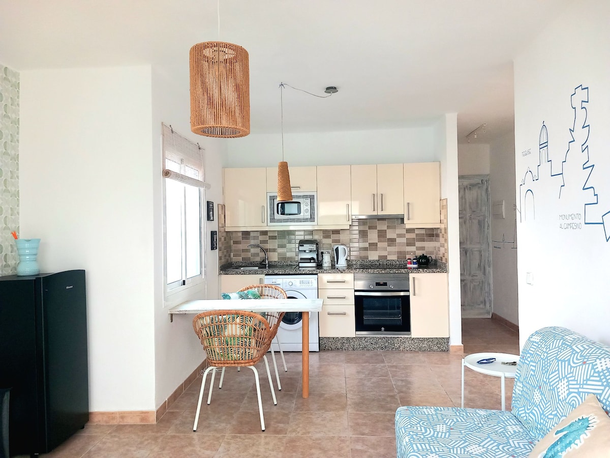 Apartmen tingkat bawah di kompleks dengan kolam renang, taman dan kawasan umum, berhampiran dengan pantai dan semua perkhidmatan, di kawasan yang tenang. Apartmen ini terdiri daripada bilik tidur yang luas dengan almari terbina dalam dan katil 1.50 x 1.90. Dapur yang dilengkapi dengan semua yang anda perlukan supaya anda tidak terlepas apa-apa apabila memasak hidangan terbaik anda. Ruang tamu dengan katil sofa yang selesa dengan TV pintar dan sambungan WiFi Teres dengan meja dan kerusi untuk menikmati matahari dan makan malam di bawah cahaya bulan.