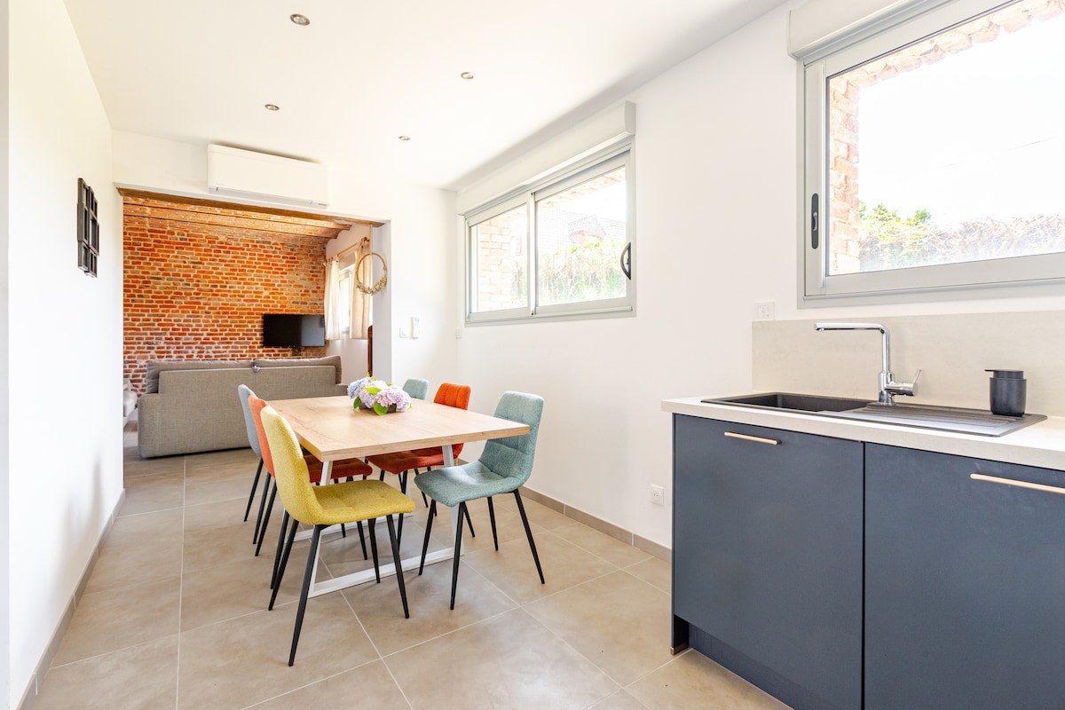 Terletak di tapak kilang lama di taman seluas 2.5 hektar yang dilalui di tepi sungai "La petite Honnelles", Cottage Sous le Cerisier akan membolehkan anda mengecas semula bateri anda dengan ketenangan fikiran. Di sekitar kolam, anda boleh melihat, duduk dengan tenang di tepi air, capung, kingfishers, ayam air... Jika cuaca tidak baik, kotej kami akan menjadi tempat yang sempurna untuk berehat dengan tenang di kepompong yang selesa dan menenangkan