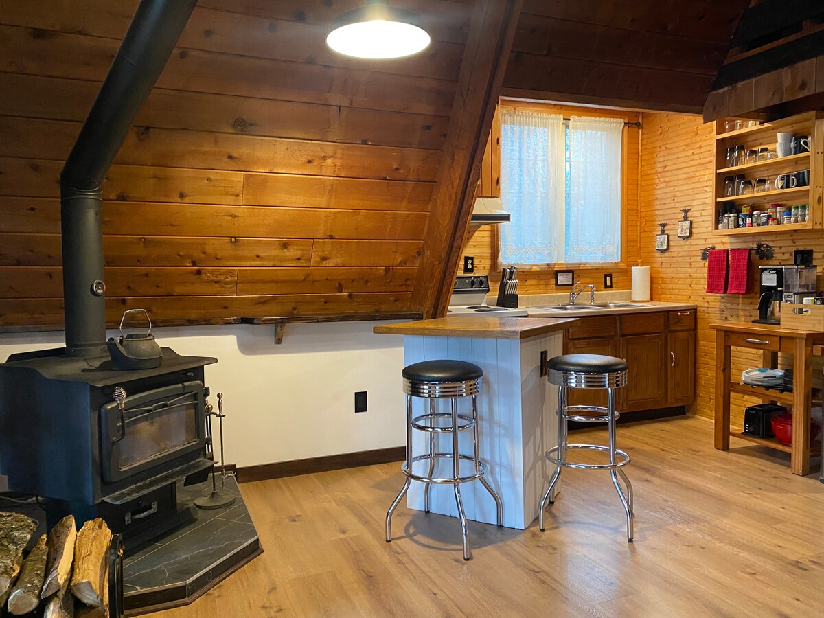 Kami mempunyai Aframe 1000 kaki persegi yang dibina dengan cantik! Baru-baru ini memasang sistem teater 100 inci di ruang tamu! Kabin terletak di Lakes of the North, yang menawarkan percutian yang sempurna untuk orang luar. Denai Berdampingan! Kami menawarkan 2 kayak untuk digunakan (mesti diangkut), papan cornhole & beg, menunggang UTV/ORV anda, hiking, arung jeram di Jordan Valley Outfitter, menaiki kereta salji & banyak restoran makan yang baik, beberapa resort ski dan perjalanan hari pendek! Selain itu, 90 jet hottub untuk berehat!