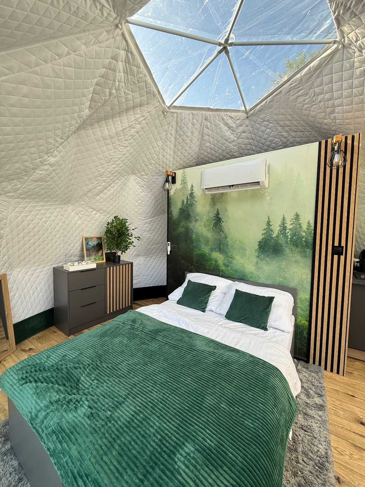 Adakah anda merindui pengembaraan? Tidur di hotel bukan untuk anda? Adakah anda ingin berehat berhampiran alam semula jadi, di antara bunyi haiwan? Jika anda menjawab YA kepada salah satu soalan ini, kami dengan senang hati menjemahkan khemah glamping kami kepada anda. Ia adalah khemah 5 meter, dengan katil besar. Kemah ini mempunyai semua aksesori dapur yang diperlukan. Terdapat toilet eko, pancuran mandi dengan air panas. Tetamu juga boleh menggunakan perapian, buaian rajut dan kerusi berjemur.