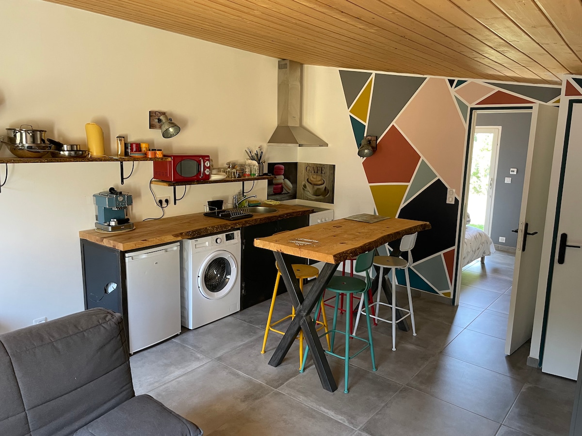 Dalam persekitaran yang tenang dan hijau, teres bebas dua bilik yang mesra ini mengundang ketenangan. Terletak di tingkat bawah rumah ladang yang besar, ia adalah sarang kecil yang tenang terbuka kepada alam semula jadi, berpaling kepada pergerakan penginapan yang tidak ketara. Nyanyian sungai, tempat-tempat taman yang berbeza menjemput untuk berehat dan bermeditasi serta berenang dan mendaki. Tempat letak kereta yang teduh dikhaskan untuknya.