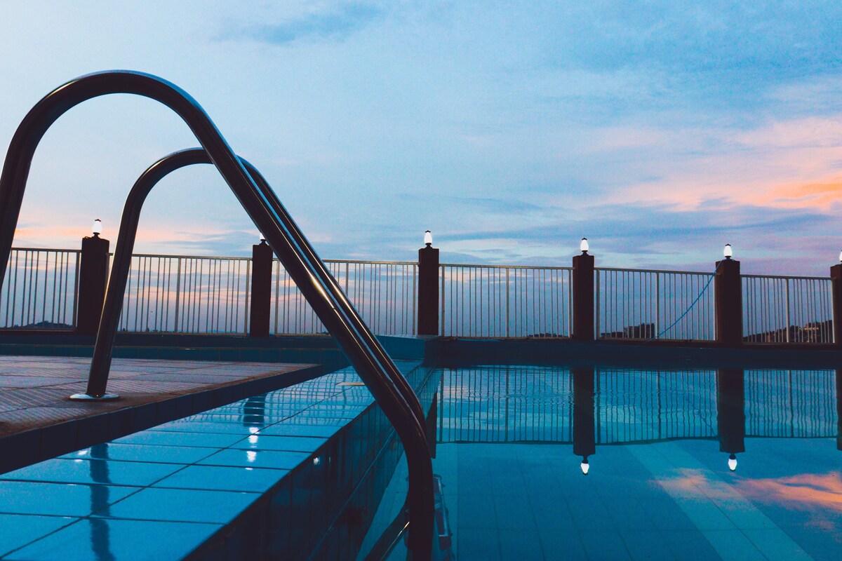 Apt Luxe Bergaya dengan kolam renang*taman * wifi * pemandangan*tempat letak kereta*
