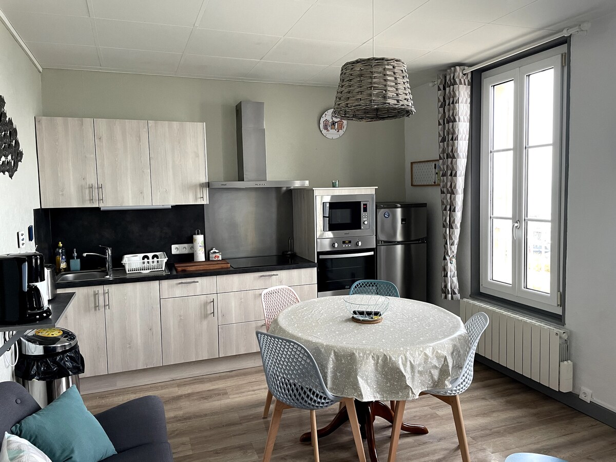 Apartmen yang cantik dalam aras taman 35m ², 2 bilik, menghadap ke selatan, teres persendirian, semuanya pada 200m dari pantai, hanya di hujung jalan! Datang dan terokai kepompong kecil ini di tengah-tengah pantai D-Day dan Calvados. Di tengah-tengah bandar bersejarah Bernières, anda dekat dengan segala-galanya, sambil menikmati ketenangan mutlak. Apartmen ini boleh memuatkan 4 orang: Sesuai untuk penginapan selama 2 orang atau untuk perjalanan keluarga. Cadar/tuala/linen rumah tidak termasuk, atas permintaan tambahan.
