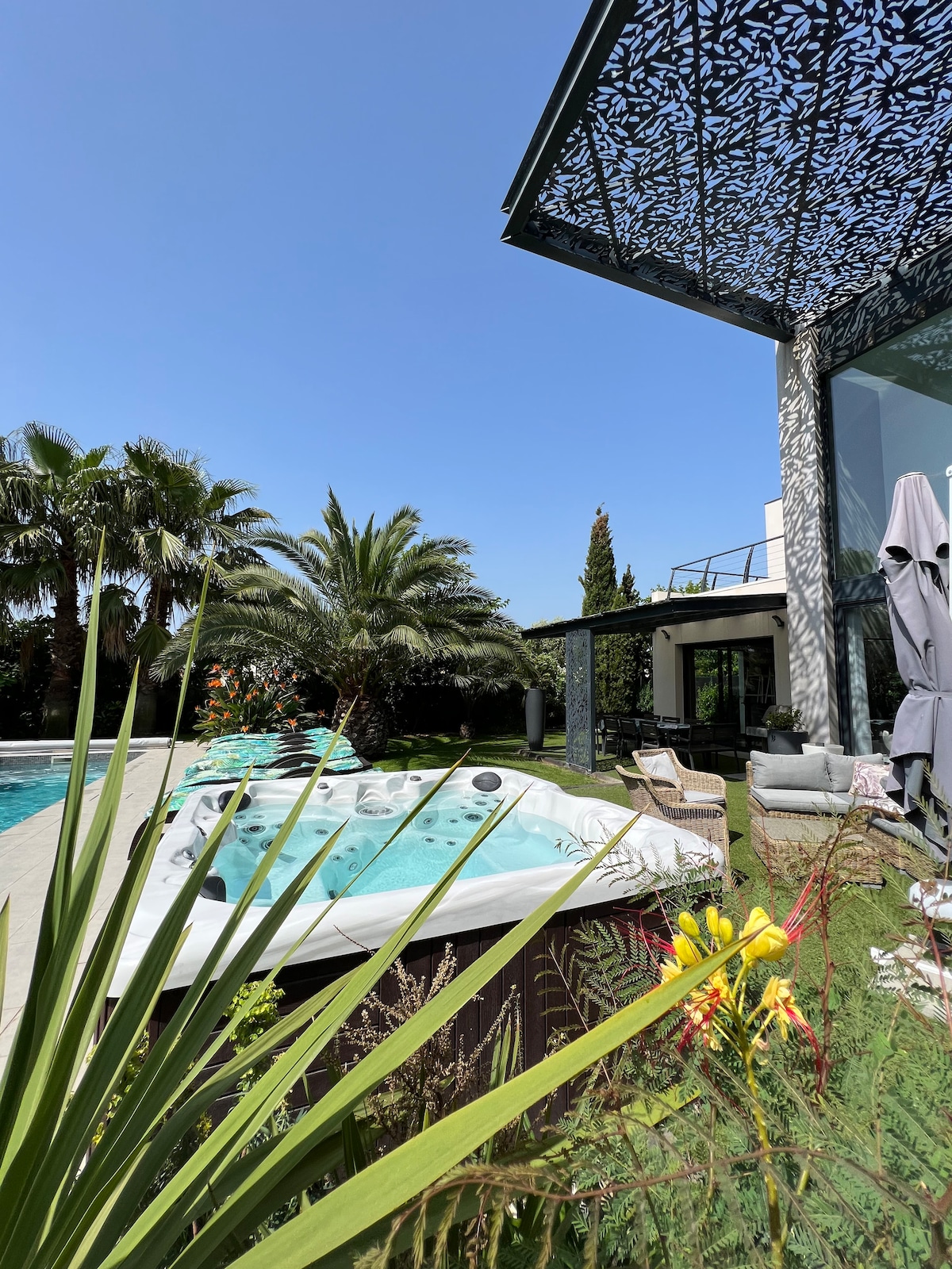 Vila seni bina kontemporari 5 bintang yang unik di Perancis, 600 meter dari pantai laut yang luas di kawasan kediaman untuk 8 orang - Cap d’Agde Vila ini mempunyai ruang tamu yang besar dengan tingkap kaca yang besar dan dapur yang dilengkapi dengan pulau tengah. Teres besar dengan ruang makan (BBQ) dan sofa luar SPA di luar untuk 5 orang KOLAM AIR PANAS (1 April hingga 1 November) dengan pengatup roller Taman eksotik berbunga yang asri Pelbagai ruang kecil untuk semua orang menikmati privasi mereka