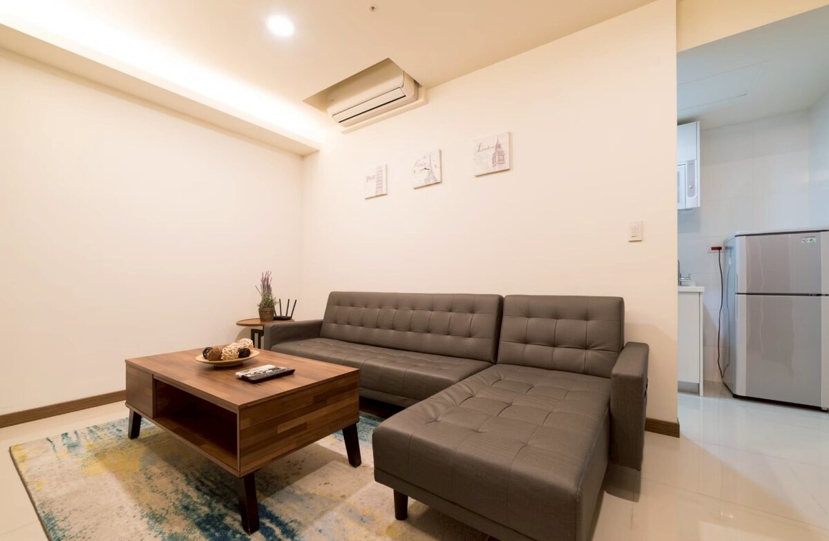 室內的灰白主色,配搭北美木紋銅色傢俱及家飾, 用心為您的居住空間提供沈靜優雅的感覺。日韓系電器的選用,不論是無線充電藍牙喇叭 ,大螢幕伸縮高清電視 ,都能滿足您對影音效果的要求。房源位於高樓內縮樓層,阻絕不必要的噪音並滿足您對景觀 ,安靜及隱私的要求。大樓並配有全天候警衛,住戶專屬電梯 ,公用大露台 ,以及地下收費停車場, 位處西門町核心路段,無論搭乘捷運或自駕都非常方便。Reka bentuk dalaman berasaskan nada bumi menawarkan suasana pemanasan, ketenangan, penyembuhan dan keseronokan. Kemudahan bilik, termasuk katil double, bilik mandi en suite dengan pancuran mandi, penyaman udara, TV 4K pintar dengan filem/Netflix, internet WIFI, pencahayaan teluk dan pemain muzik dengan sambungan wayarles & port pengecas USB.