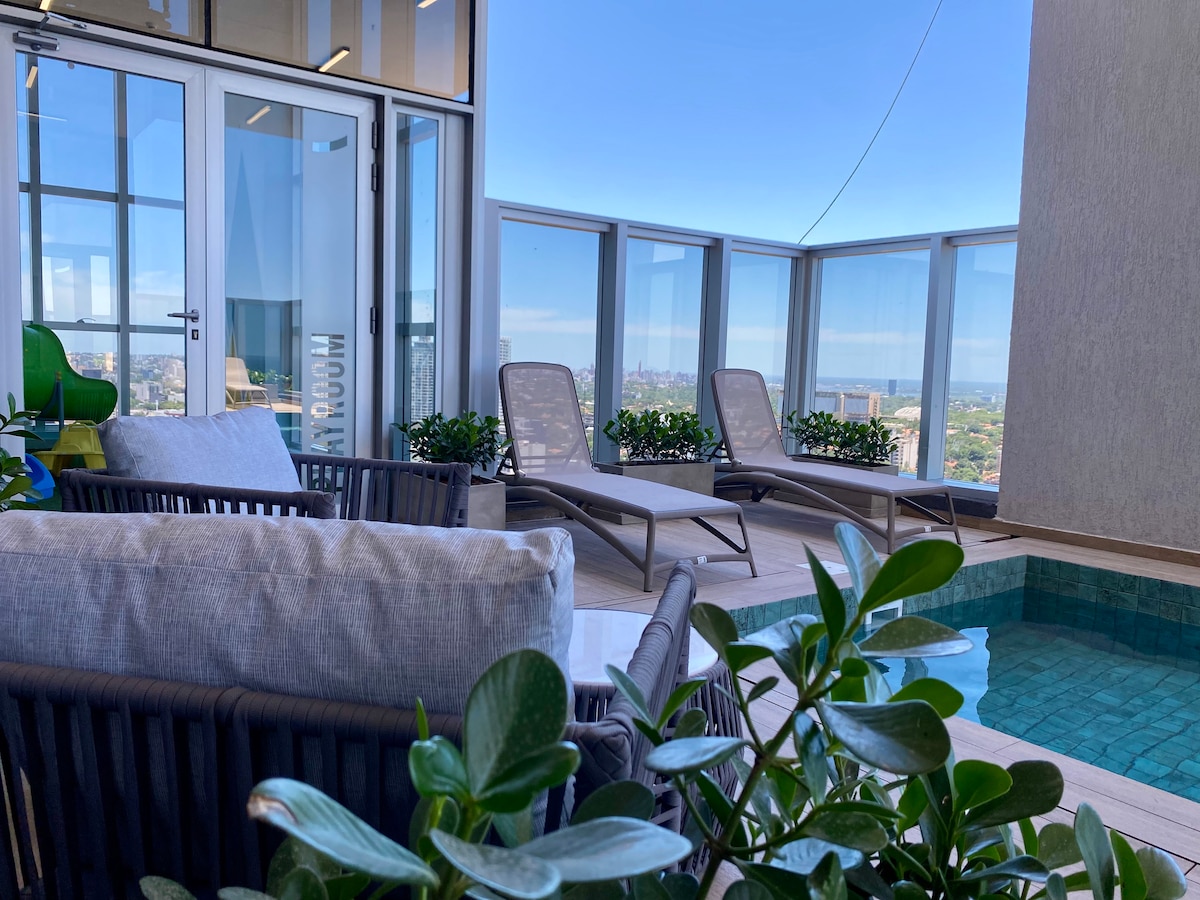 Nikmati keselesaan dan kemudahan di apartmen 47 m² yang bergaya ini dengan balkoni dan tempat letak kenderaan di tingkat 15. Unit menghadap jauh dari jalan utama, menawarkan penginapan yang tenang dan bebas bunyi bising dengan pemandangan bandar panorama. Lokasi Tiada Tandingan • 10 minit berjalan kaki ke Pusat Beli-belah terbesar Asuncions, Shopping del Sol dan Paseo La Galería • Pasar raya premium Casa Rica juga 10 minit • Kedai runcit 24/7 dan farmasi Biggies 24/7 di seberang jalan Semua yang anda perlukan hanya beberapa langkah lagi!