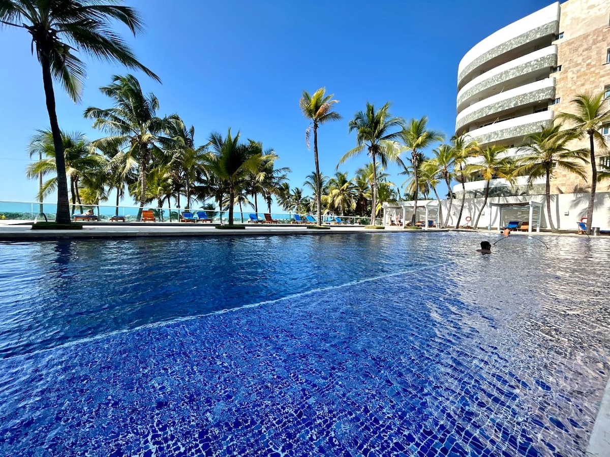 Apartmen eksklusif tingkat 30 Morros City dengan pemandangan laut dan pusat bersejarah yang luar biasa dan memukau. Bilik tidur utama dengan pemandangan laut langsung dan akses balkoni. Dapur penuh, mesin basuh dan pengering 2-dalam-1, TV Pintar 60", WiFi gentian optik 500MB. Bocagrande tepi pantai dengan kemudahan mewah: kolam renang, jacuzzi, mandian Turki dan gimnasium. Tempat letak kenderaan percuma. Sesuai untuk pasangan yang mencari pengalaman paling eksklusif dari tingkat tertinggi yang tersedia di seluruh Cartagena.