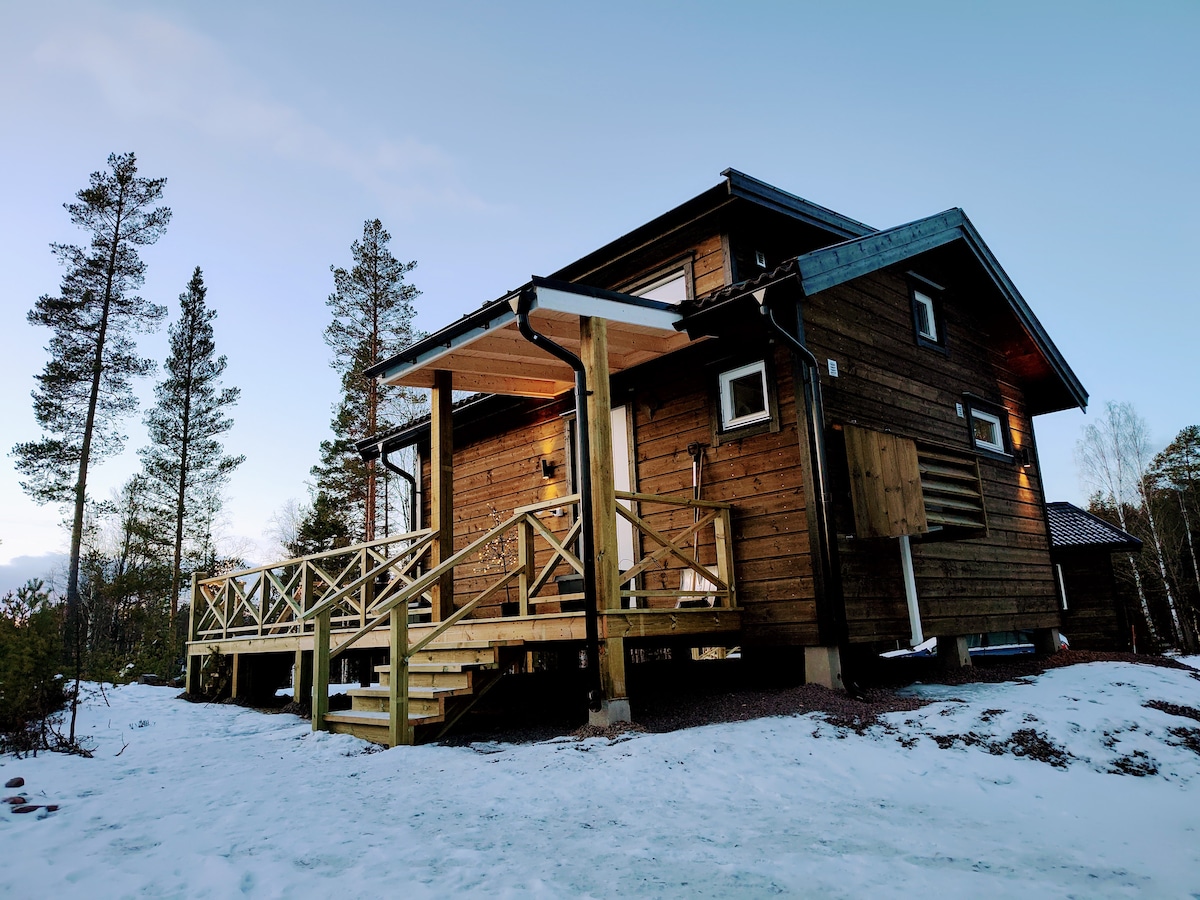 Rumah kayu yang menawan di tepi denai alam semula jadi Vasalopp