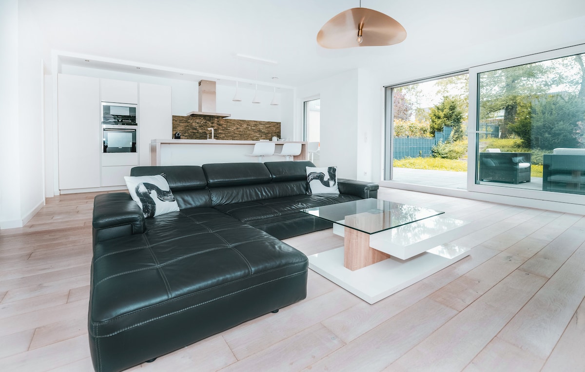 Villa élégante à Mondorf-les-Bains— charme, espace & confort haut de gamme Luxe & confort Villa neuve et spacieuse à Mondorf-les-Bains, quartier calme et bourgeois. 6 chambres, 2 salons, 2 salles de bains, 3 WC, cuisine équipée, jardin, terrasse et 5 parkings gratuits. À deux pas du casino, du domaine thermal et du parc national. Bus gratuit vers Luxembourg-Ville (25 min). Idéal familles, groupes ou séjours pro.