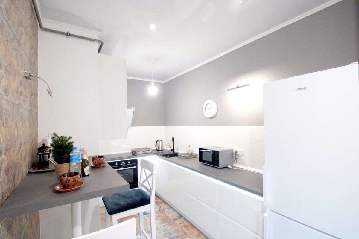 Apartmen premium dengan pengubahsuaian pereka dalam pembinaan baru, terletak di jalan yang tenang, sangat dekat dengan dataran pusat. Ada segala-galanya yang anda perlukan untuk penginapan yang selesa (termasuk WI-Fi, Smart TV dengan akses YouTube) termasuk balkoni lengkap dengan pemandangan bandar yang luar biasa! Tempat letak kereta di sekitar sudut (dalam masa 2 minit), dalam jarak berjalan kaki terdapat pusat membeli-belah besar "Forum" dengan banyak kedai dan pasar raya besar, kedai kopi dan bar, restoran dan muzium Lviv! Opera House 3-5 minit perjalanan!