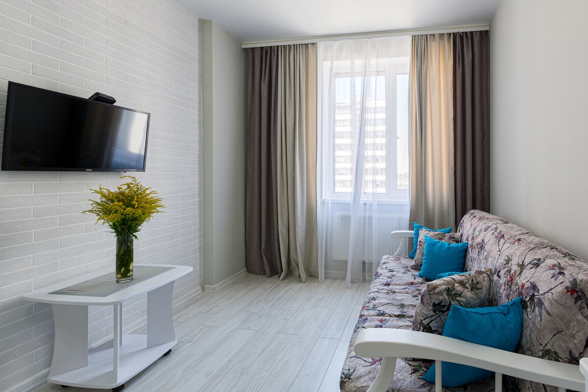 Penginapan moden di bangunan baru. Satu bilik. Di dalam bilik ada sofa dan katil. Terdapat internet ,peralatan,dan semua yang anda perlukan. Rumah ini mempunyai kafe,restoran pizza, kedai,gimnasium,farmasi. Di seberang jalan terdapat taman, tasik. Pusat ini berjarak 15 minit menaiki bas. Berdekatan ialah pusat hiburan Victoria Garden, South Market, pasar borong Shuvar.