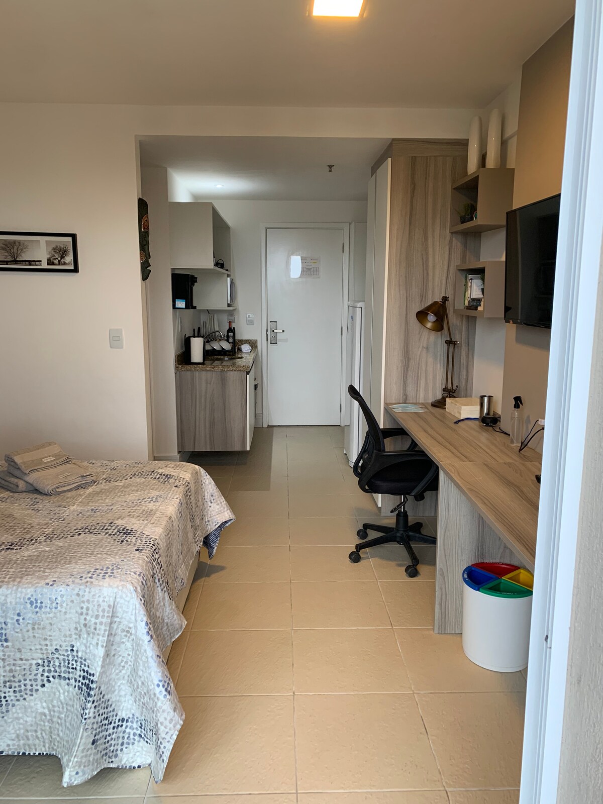 Rasa seperti di rumah sendiri di Flat 613 Ramada Macaé. Lokasi yang sangat selesa, dibuat untuk anda. Persekitaran yang senyap dan praktikal, beberapa meter dari pantai, pusat bandar, farmasi, pasar. Flat ini memuatkan sehingga 3 tetamu, seperti berikut: 1 Katil King 1 tilam tambahan yang selesa di atas lantai (tersedia sekiranya tempahan untuk 3 orang). Tempat letak kereta percuma Tv Pintar Akses kepada kolam renang, sauna dan gimnasium. Buat tempahan anda, kami sedia jika anda memerlukan kami.