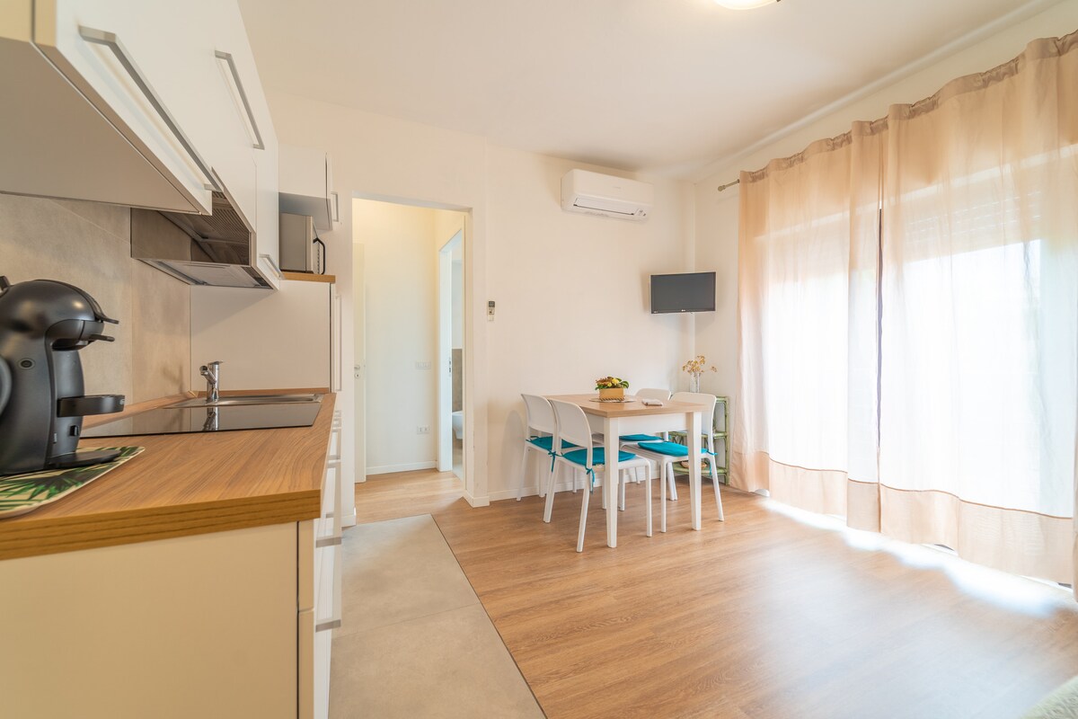Apartmen dua bilik yang lapang dan terang di tingkat satu, terletak di jalan-jalan ciri pusat bersejarah. Ia terdiri daripada ruang tamu yang besar, dapur yang lengkap, bilik mandi dengan pancuran mandi,dua bilik tidur (tiga jumlah katil) kedua-duanya dengan teres yang menghadap ke laut. Apartmen ini juga dilengkapi dengan mesin basuh,dua TV dan pembuat kopi