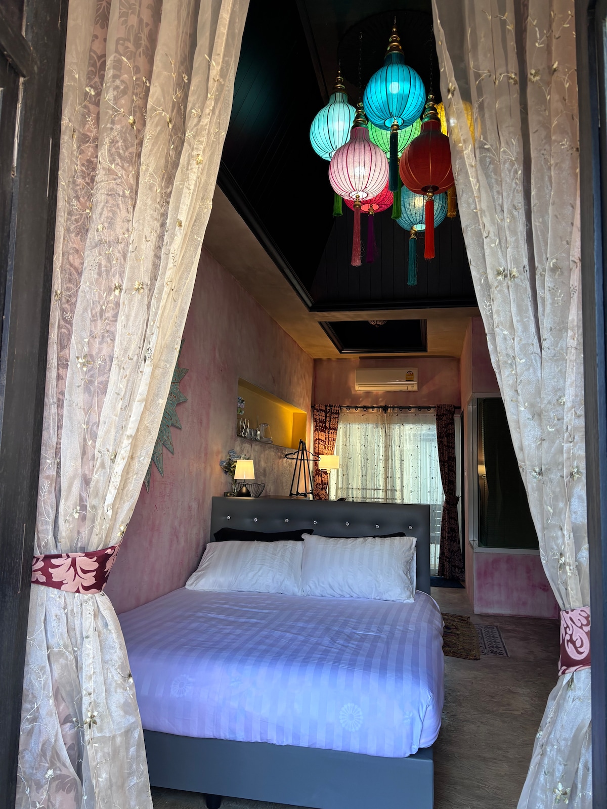 Nikmati ketenangan Pai luar bandar, yang terletak hanya 6km dari Pai Walking Street yang meriah. Penginapan kami hanya sepelemparan batu dari Pai Canyon dan mata air panas berhampiran, menawarkan anda gabungan percutian dan kebolehcapaian yang sempurna. Banglo ini mempunyai hiasan menarik yang melengkapkan keindahan semula jadi di sekelilingnya. Pasangan dan pengembara solo akan mendapati ini tempat yang tenang untuk introspeksi, bersantai dan meneroka.
