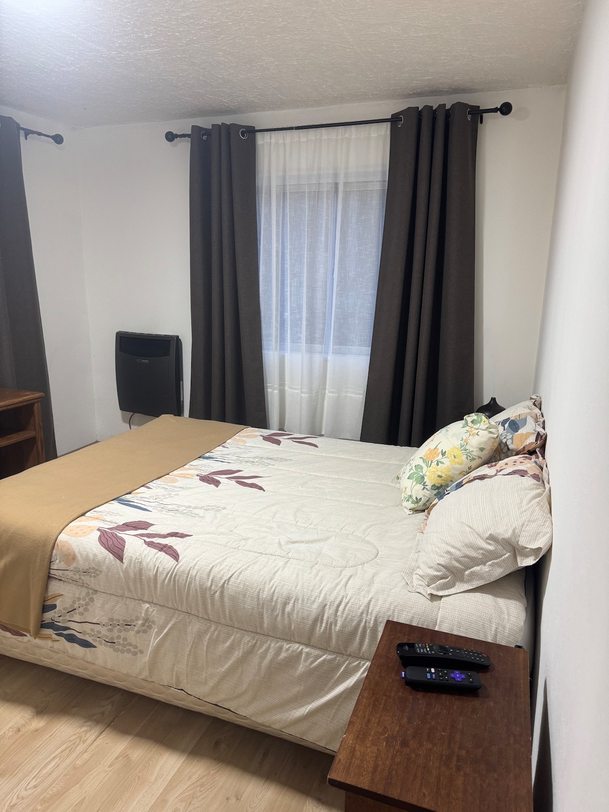 Relájate en este apartamento acogedor, cerca a lugares de interés, cómodo espacio con todo lo que necesitas para una estadía larga, si viajas en pareja,1 dormitorio,1 baño, cocina comedor, estacionamiento gratis, wifi, tv, calefacción, su ubicación es perfecta libre de ruidos por estar en zona residencial a poca distancia de lugares comerciales (Farmacias, super market, cafeterías, Unimarc, clínicas, Estadio Fiscal a unas cuadras de la playa) ¡Todo lo que necesitas para conocer Punta Arenas!